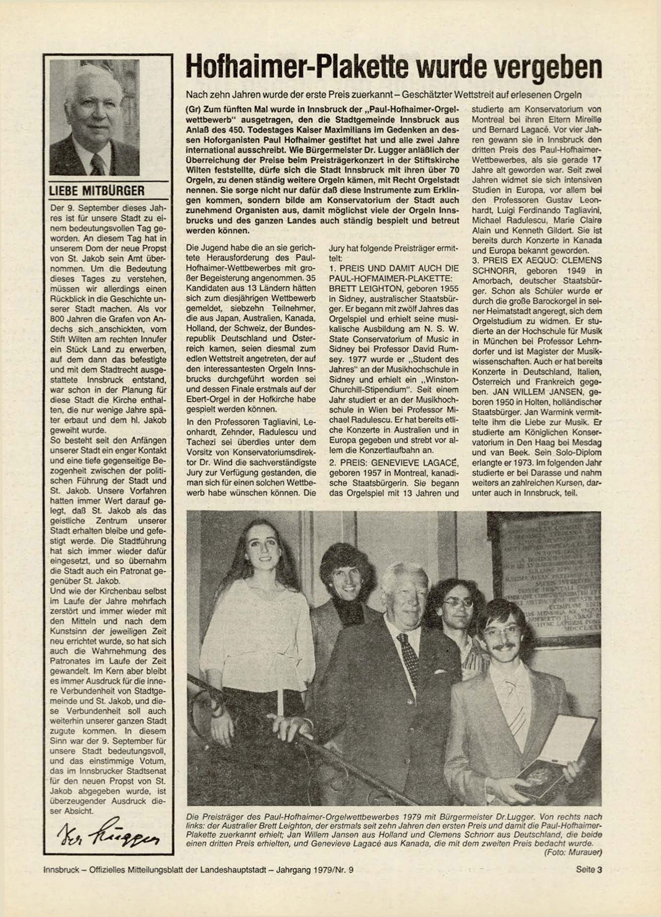 (Gr) Zum fünften Mal wurde in Innsbruck der „Paul-Hofhaimer-Orgelwettbewerb" ausgetragen, den die Stadtgemeinde Innsbruck aus