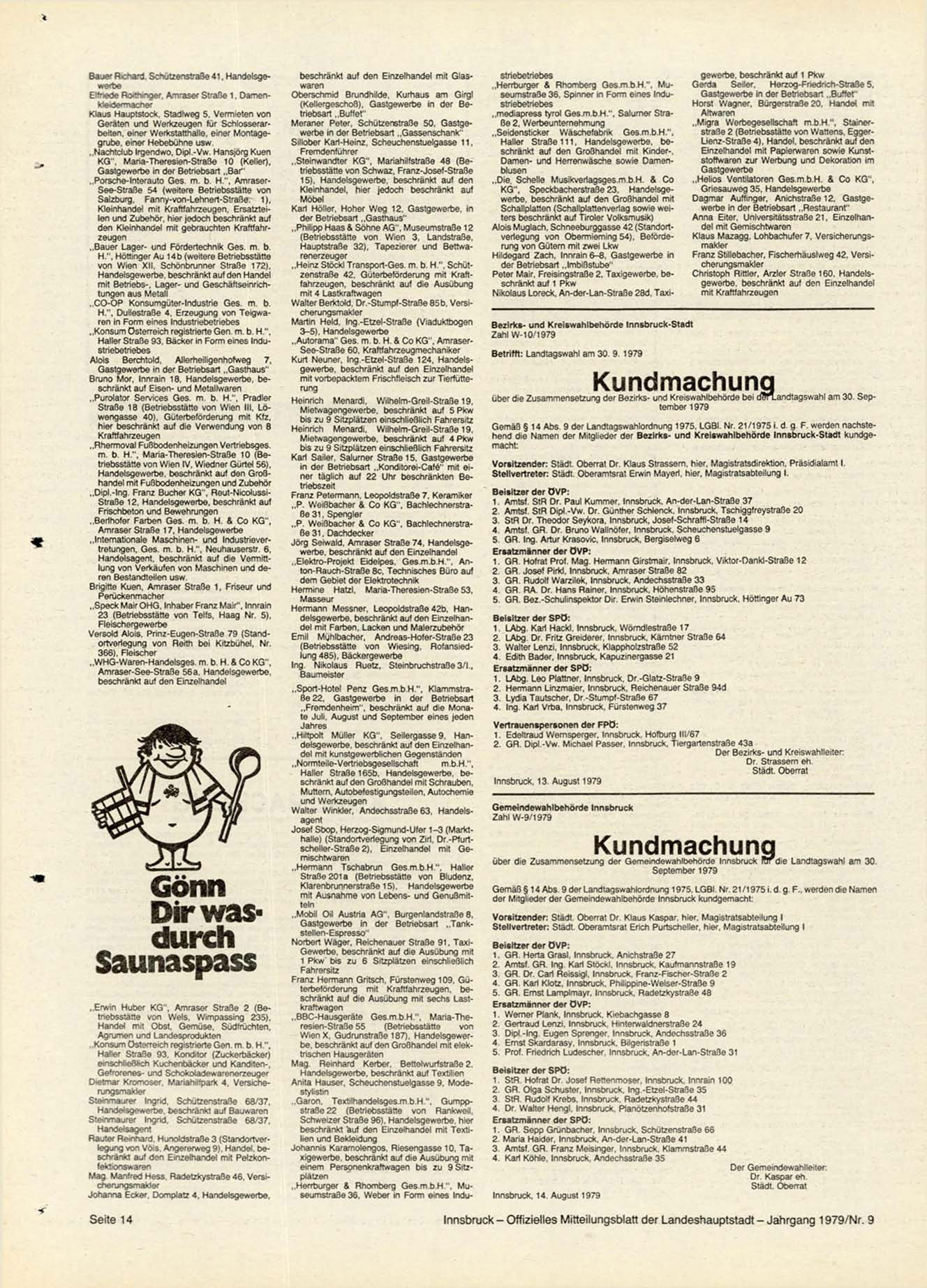 Innsbruck - Offizielles Mitteilungsblatt der Landeshauptstadt - Jahrgang 1979/Nr. 9