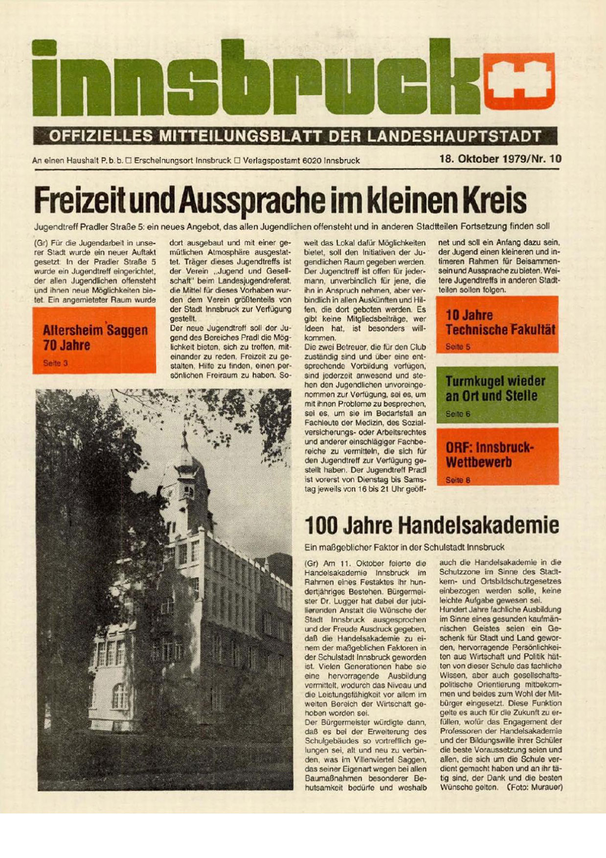 An einen Haushalt P.b. b. □I Erscheinungsort Innsbruck □ Verlagspostamt 6020 Innsbruck 18. Oktober 1979/Nr. 10