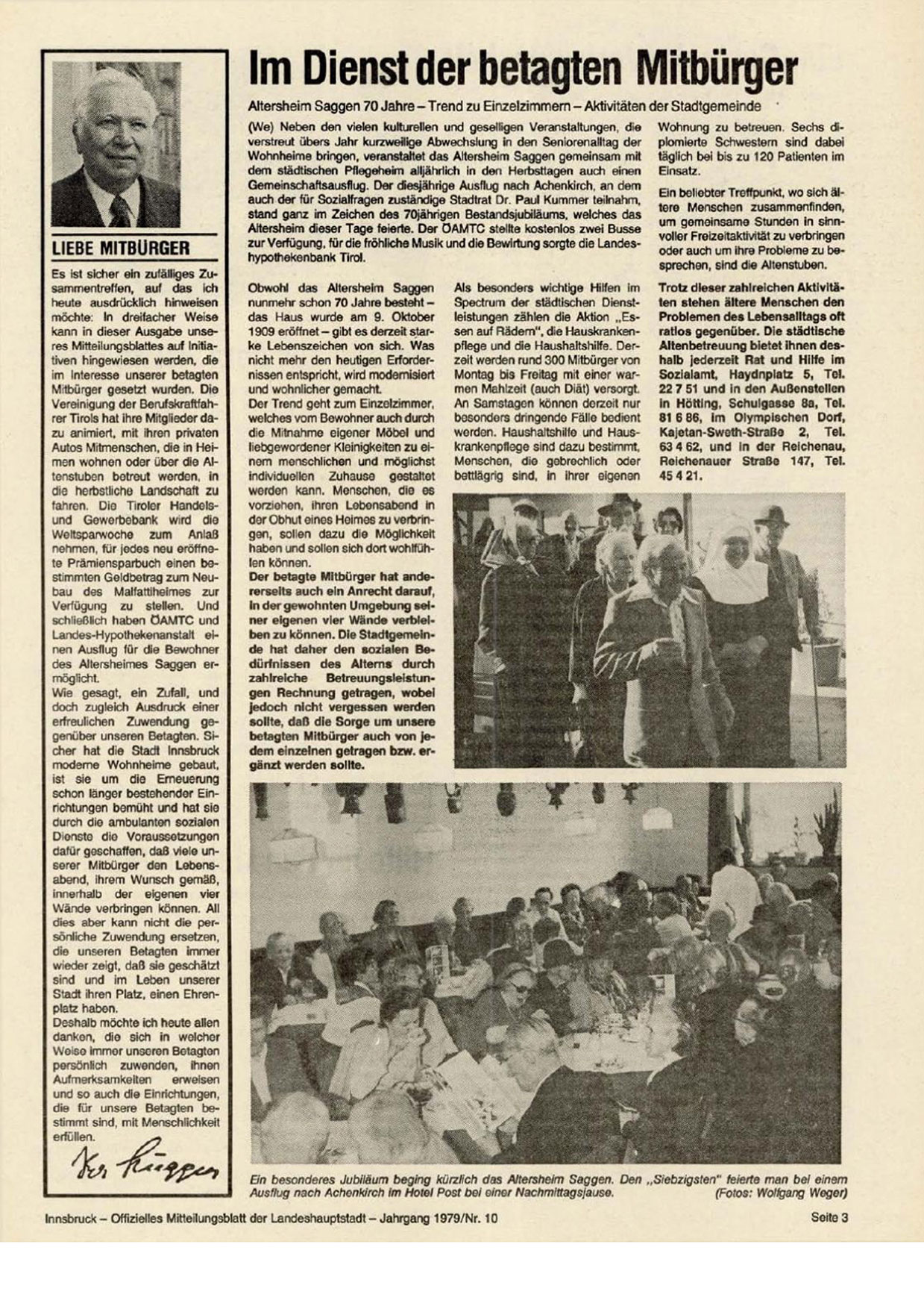 Altersheim Saggen 70 Jahre — Trend zu Eirzelzimmern - Aktivitäten der Stadtgemeinde