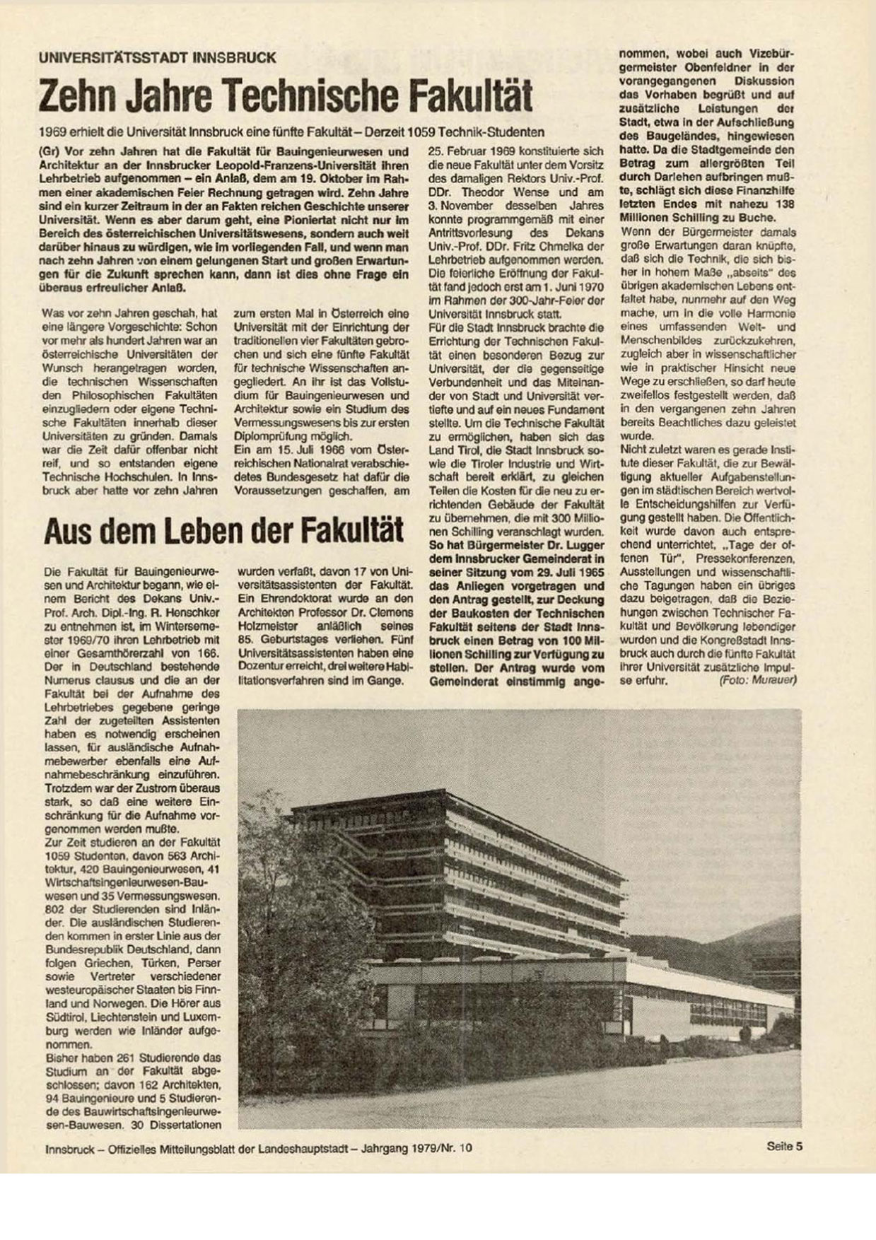 Beziehungen zwischen Technischer Fakultät und Bevölkerung lebendiger wurden und de Kongreßstadt Innsbruck auch durch die fünfte Fakuität Ihrer Universität zusätzlche impulse erfuhr. (Foto: Murauer)