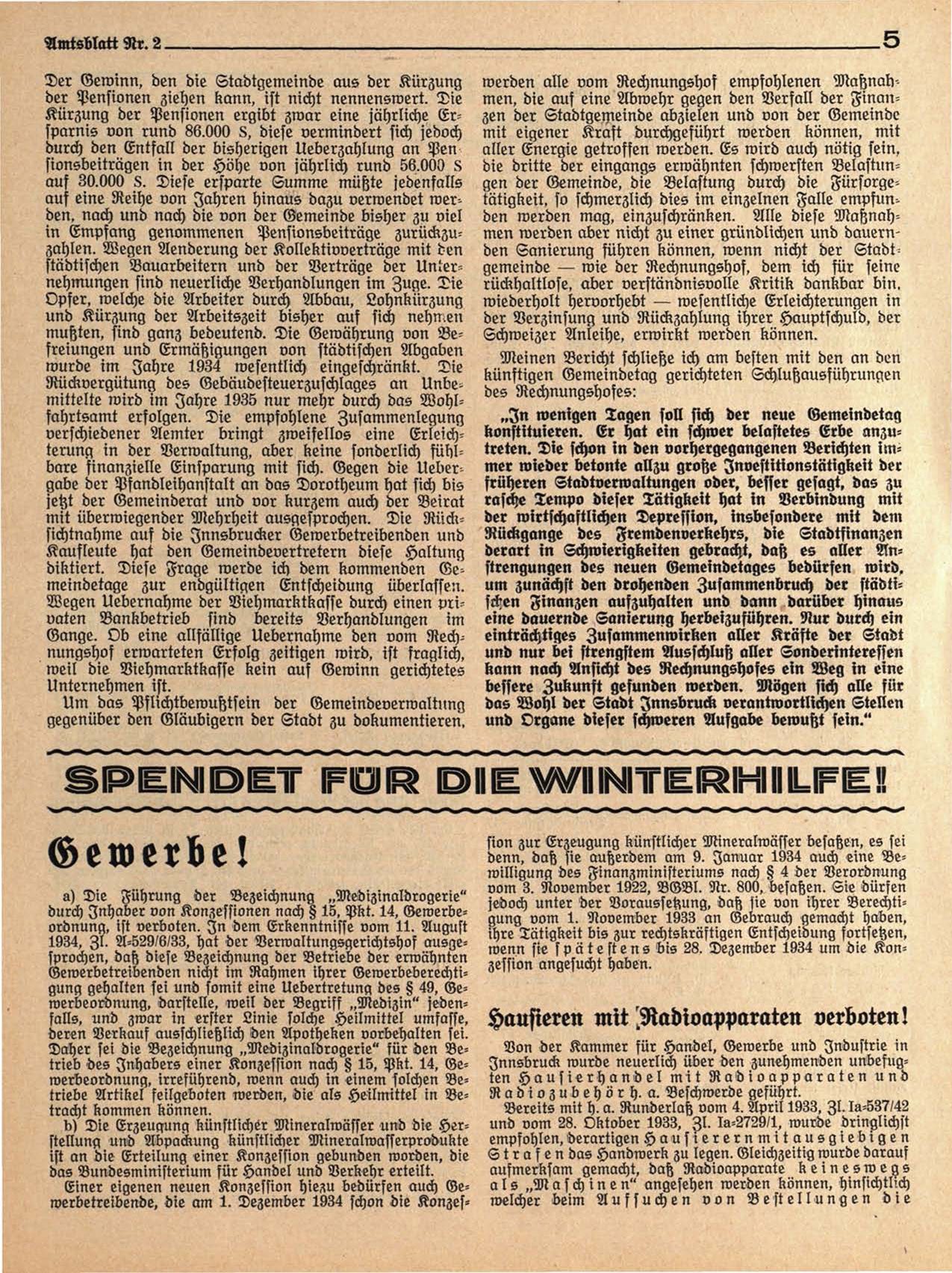 Innsbruck wurde neuerlich über den zunehmenden unbefugten H a u s i e r h a n d e l m i t R a d i o a p p a r a t e n u n d