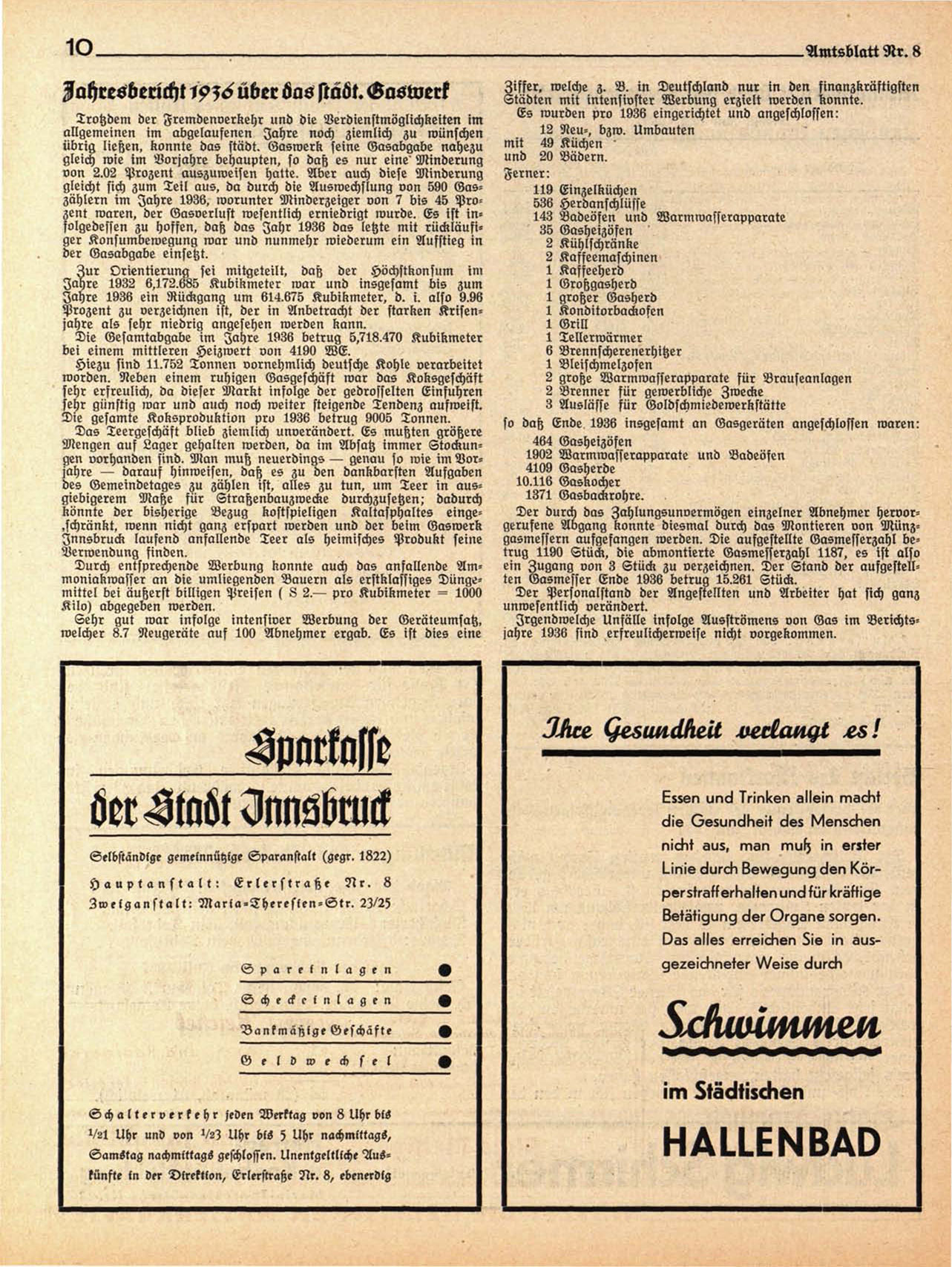 ein Zugang von 3 Stück zu verzeichnen. Der Stand der aufgestellten Gasmesser Ende 1936 betrug 15.261 Stück.