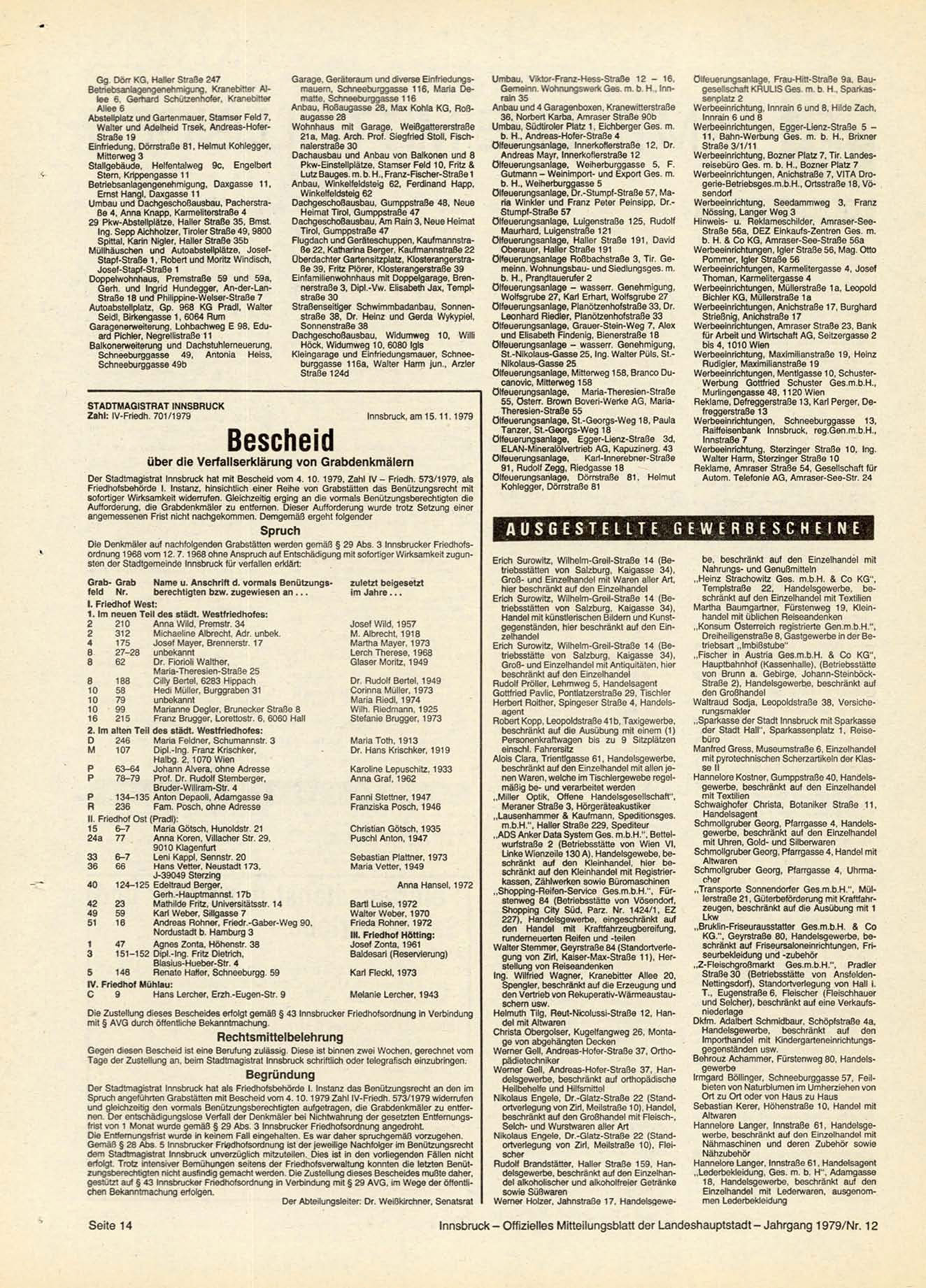 Innsbruck-Offizielles Mitteilungsblatt der Landeshauptstadt-Jahrgang 1979/Nr. 12