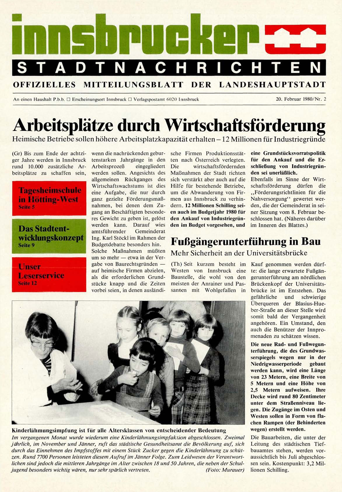 um die Abwanderung von Firmen aus Innsbruck zu verhindern. 12 Millionen Schilling seien auch im Budgetjahr 1980 für