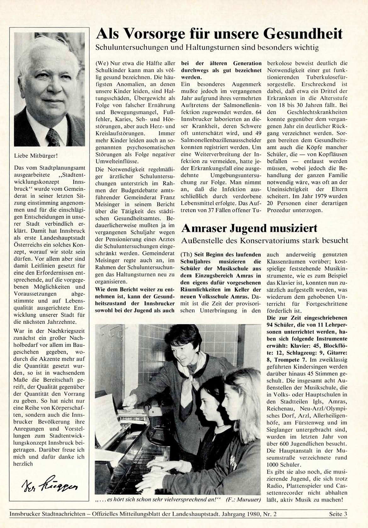 Innsbrucker Stadtnachrichten - Offizielles Mitteilungsblatt der Landeshauptstadt. Jahrgang 1980, N r . 2