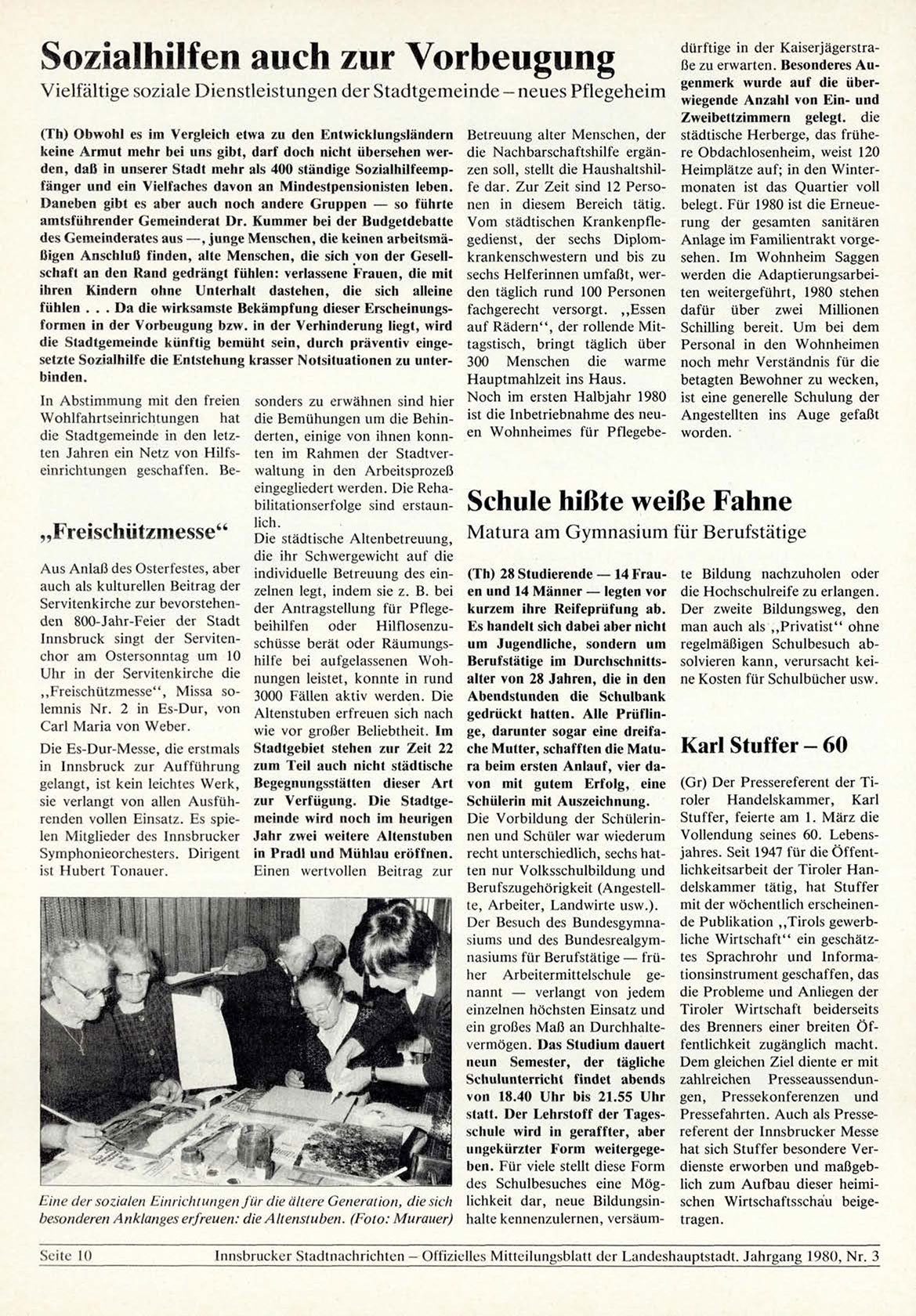 Innsbrucker Stadtnachrichten — Offizielles Mitteilungsblatt der Landeshauptstadt. Jahrgang 1980, N r . 3