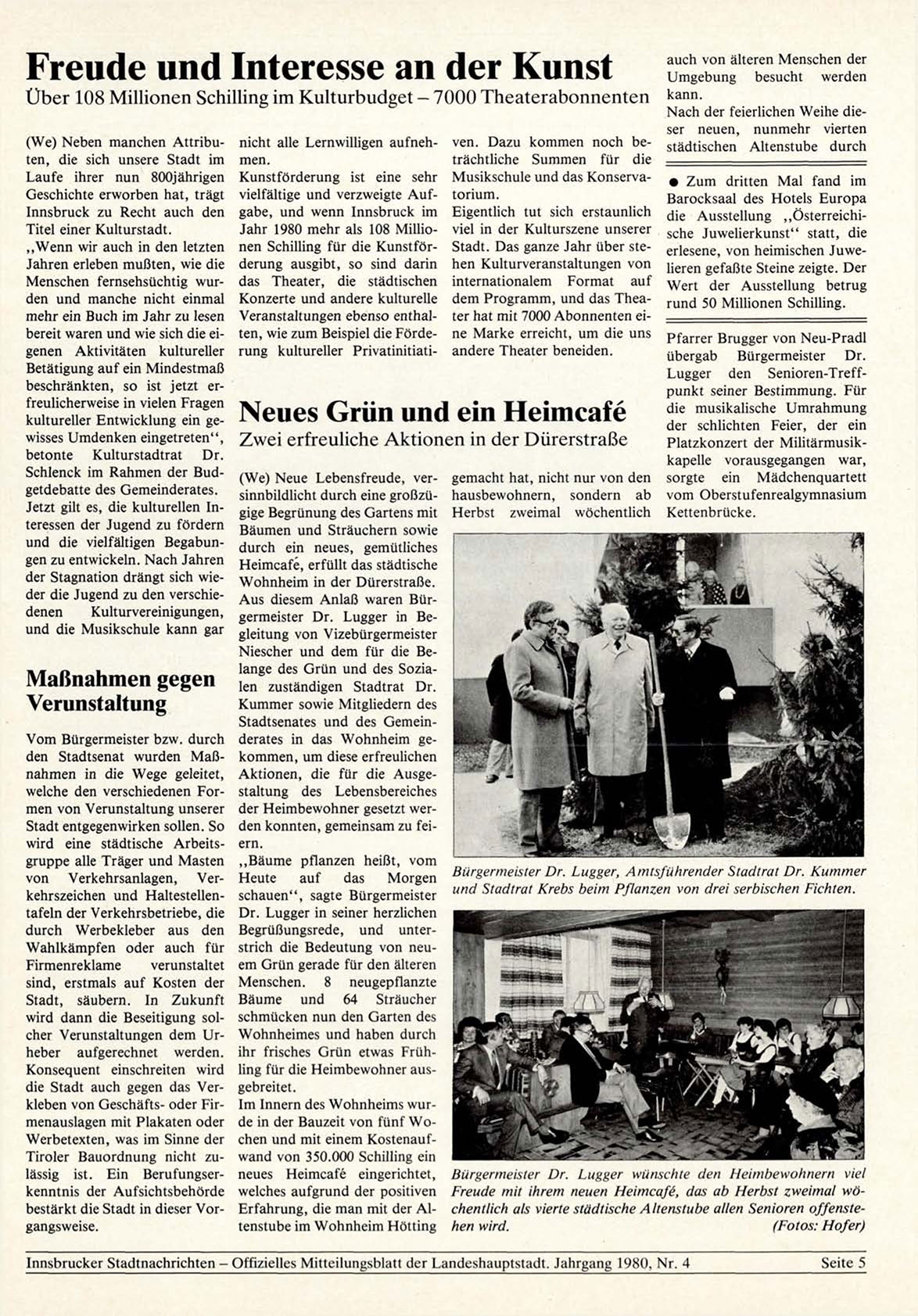 Innsbrucker Stadtnachrichten - Offizielles Mitteilungsblatt der Landeshauptstadt. Jahrgang 1980, N r . 4