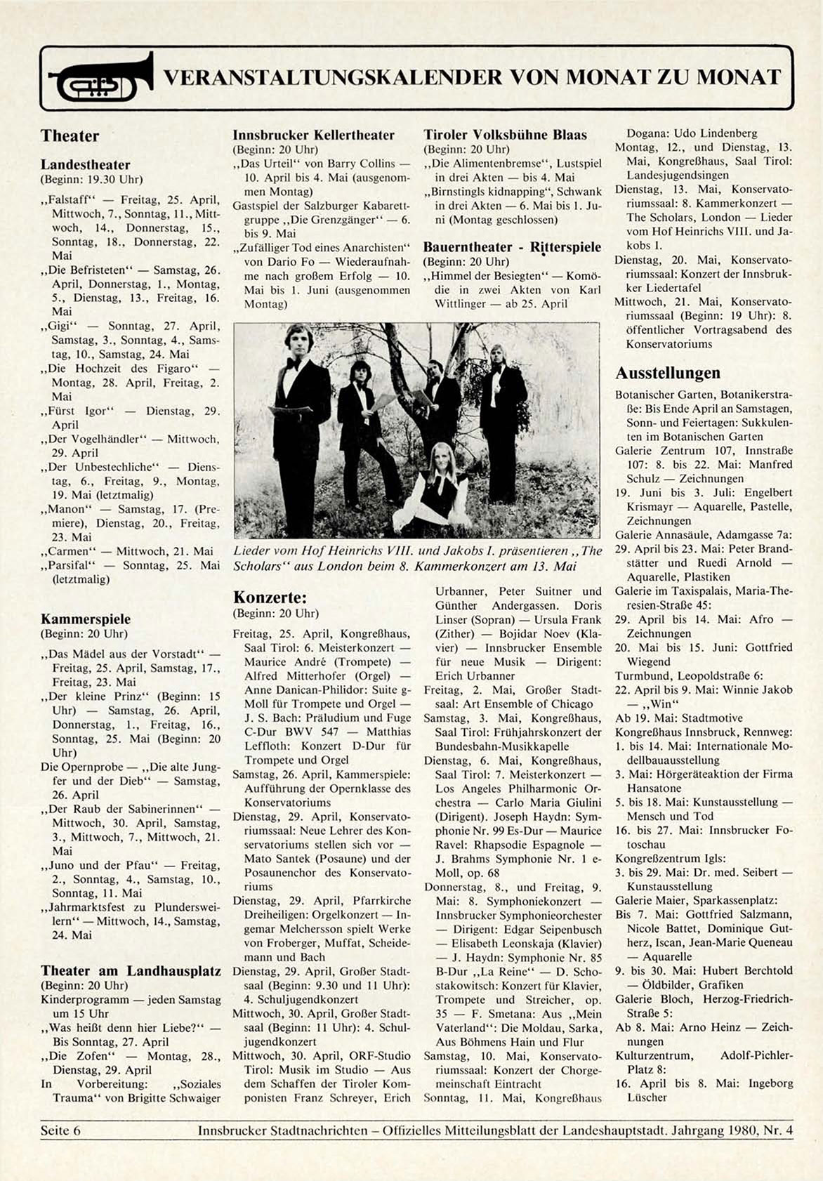 Innsbrucker Stadtnachrichten - Offizielles Mitteilungsblatt der Landeshauptstadt. Jahrgang 1980, N r . 4