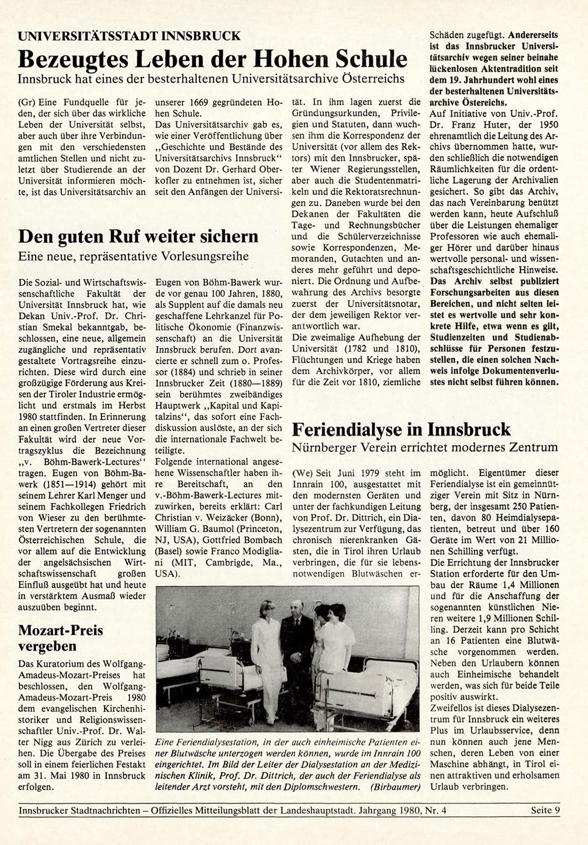 Innsbrucker Stadtnachrichten - Offizielles Mitteilungsblatt der Landeshauptstadt. Jahrgang 1980, N r . 4