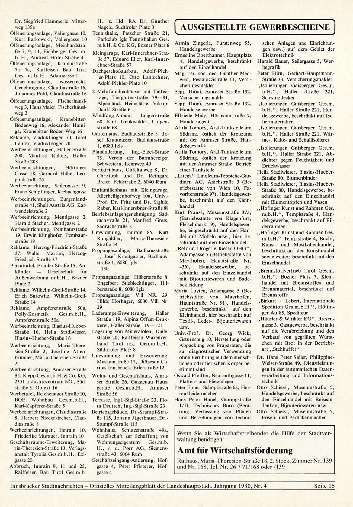 Innsbrucker Stadtnachrichten - Offizielles Mitteilungsblatt der Landeshauptstadt. Jahrgang 1980, N r . 4