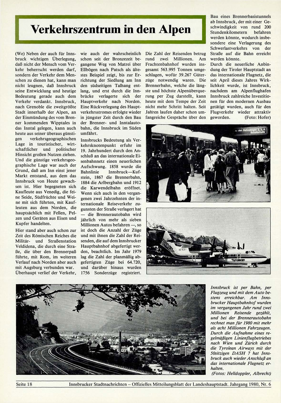Innsbrucker Stadtnachrichten - Offizielles Mitteilungsblatt der Landeshauptstadt. Jahrgang 1980, Nr. 6