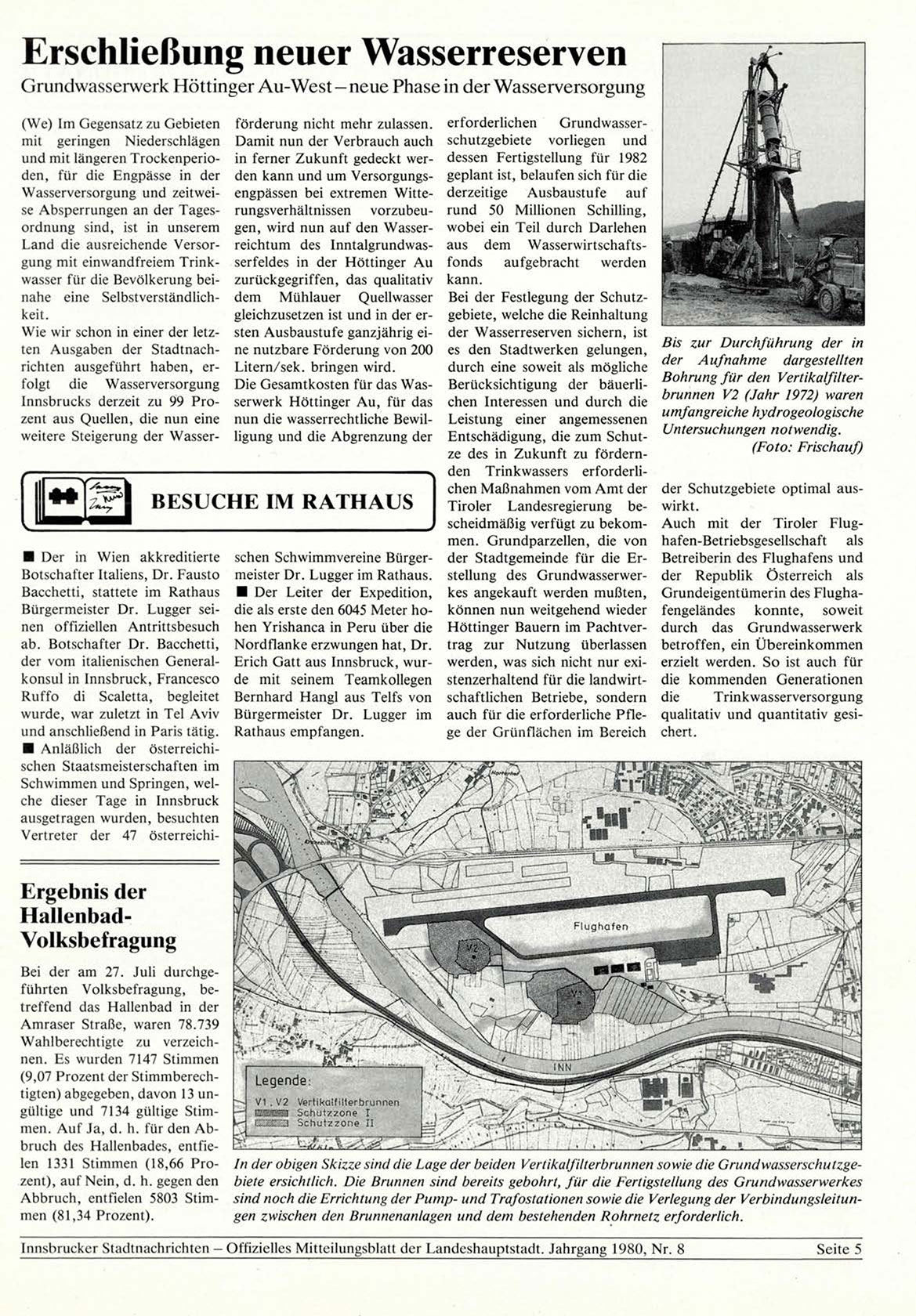 Innsbrucker Stadtnachrichten - Offizielles Mitteilungsblatt der Landeshauptstadt. Jahrgang 1980, N r . 8