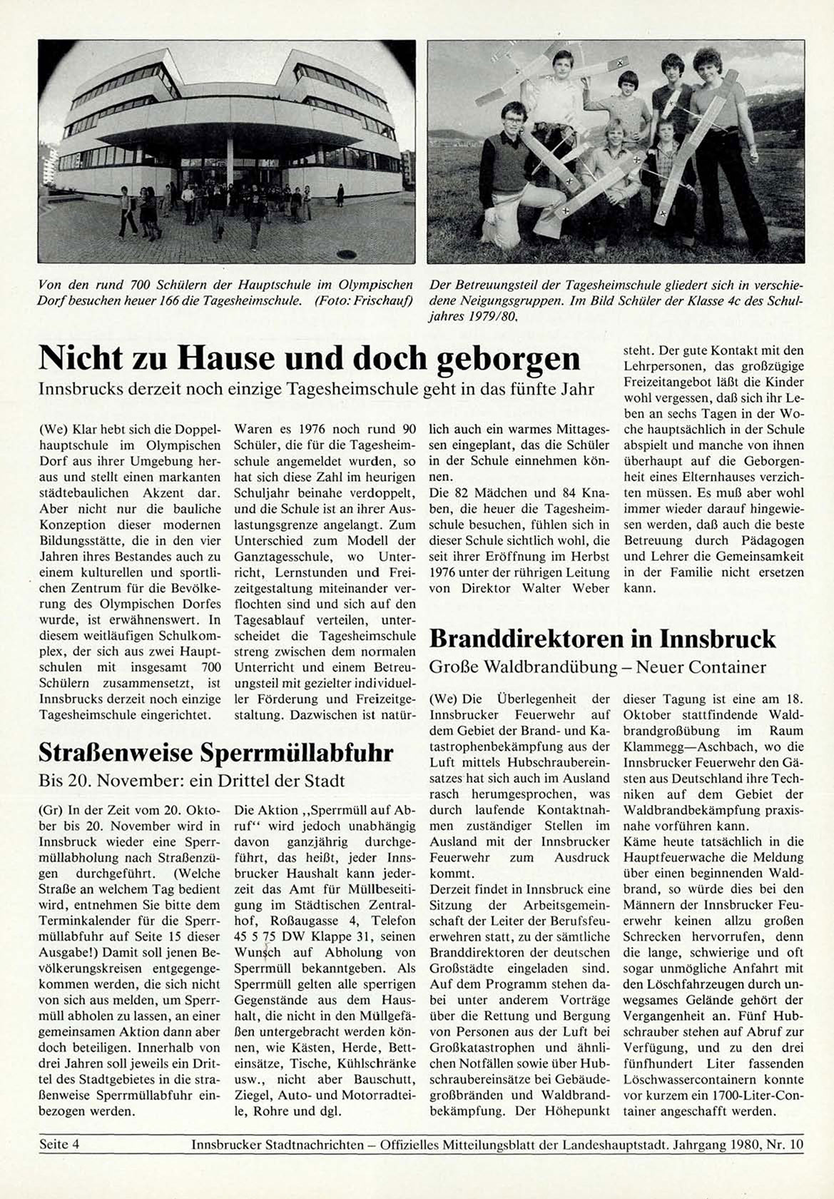 Innsbrucker Stadtnachrichten - Offizielles Mitteilungsblatt der Landeshauptstadt. Jahrgang 1980, N r . 10
