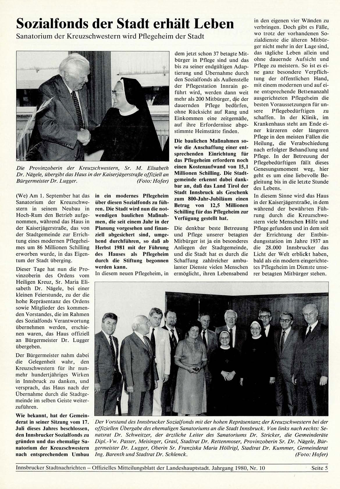 Innsbrucker Stadtnachrichten - Offizielles Mitteilungsblatt der Landeshauptstadt. Jahrgang 1980, Nr. 10