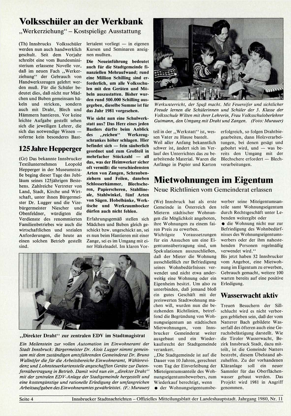 Innsbrucker Stadtnachrichten - Offizielles Mitteilungsblatt der Landeshauptstadt. Jahrgang 1980, Nr. 11