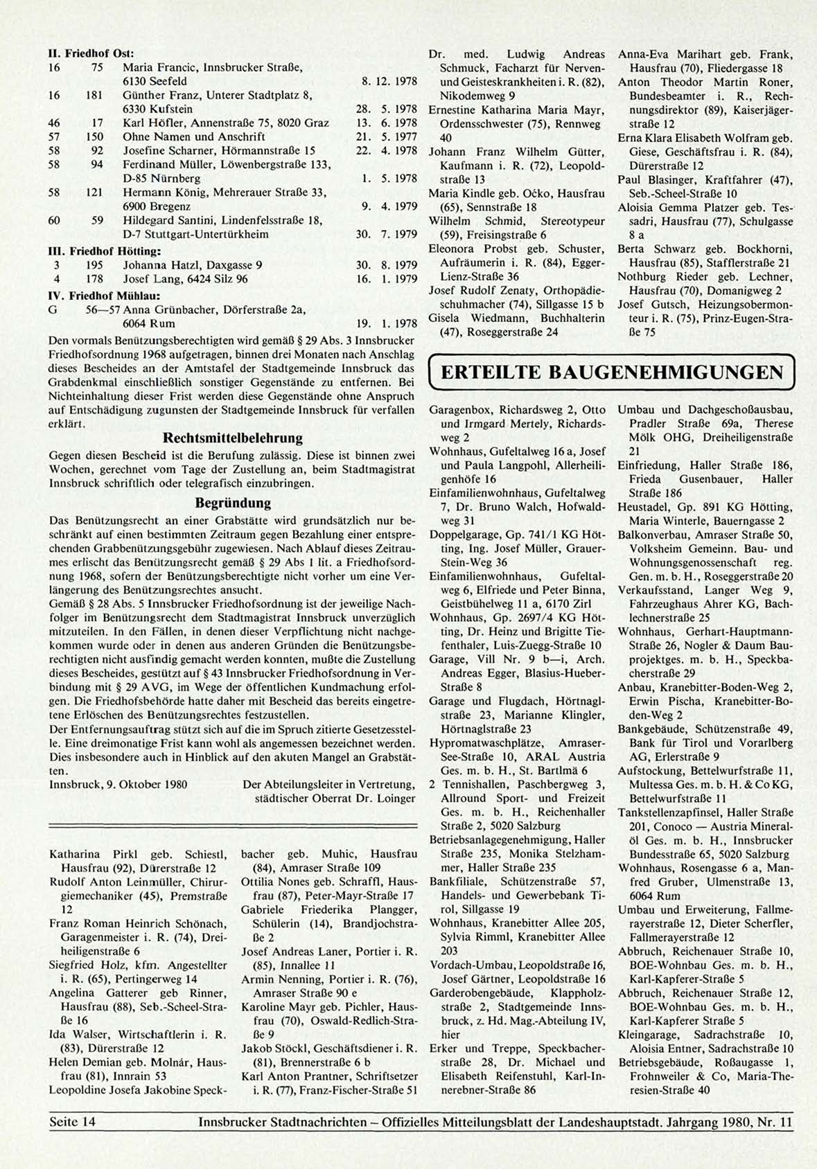Innsbrucker Stadtnachrichten — Offizielles Mitteilungsblatt der Landeshauptstadt. Jahrgang 1980, Nr. 11