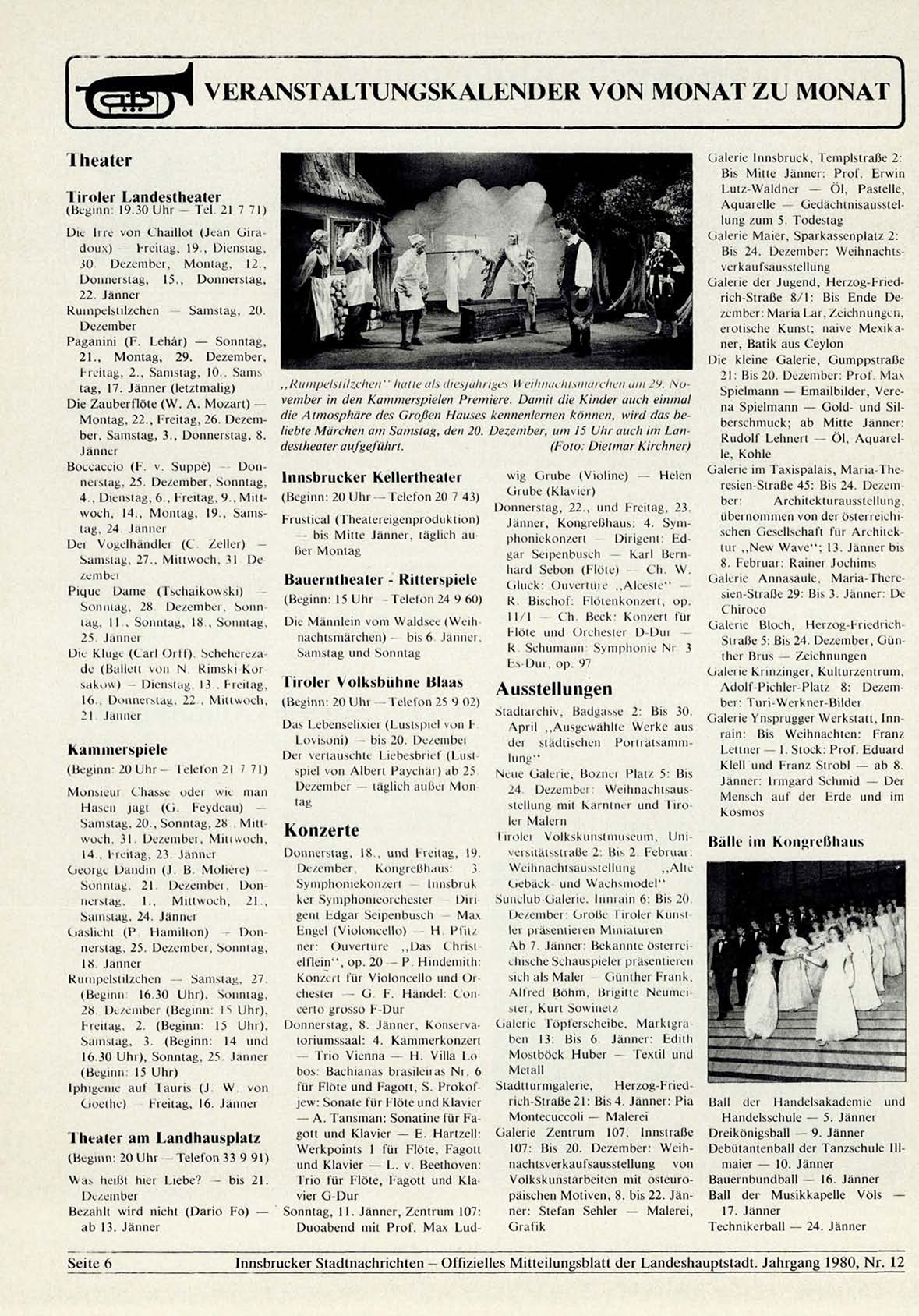 Innsbrucker Stadtnachrichten - Offizielles Mitteilungsblatt der Landeshauptstadt. Jahrgang 1980, N r . 12