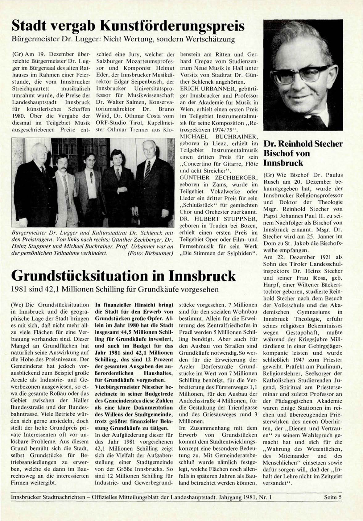 Innsbrucker Stadtnachrichten - Offizielles Mitteilungsblatt der Landeshauptstadt. Jahrgang 1981, Nr.