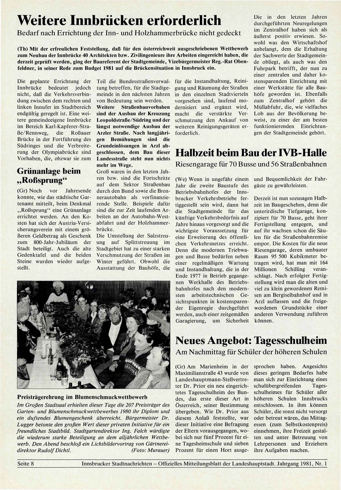 Innsbrucker Stadtnachrichten — Offizielles Mitteilungsblatt der Landeshauptstadt. Jahrgang 1981, Nr. 1