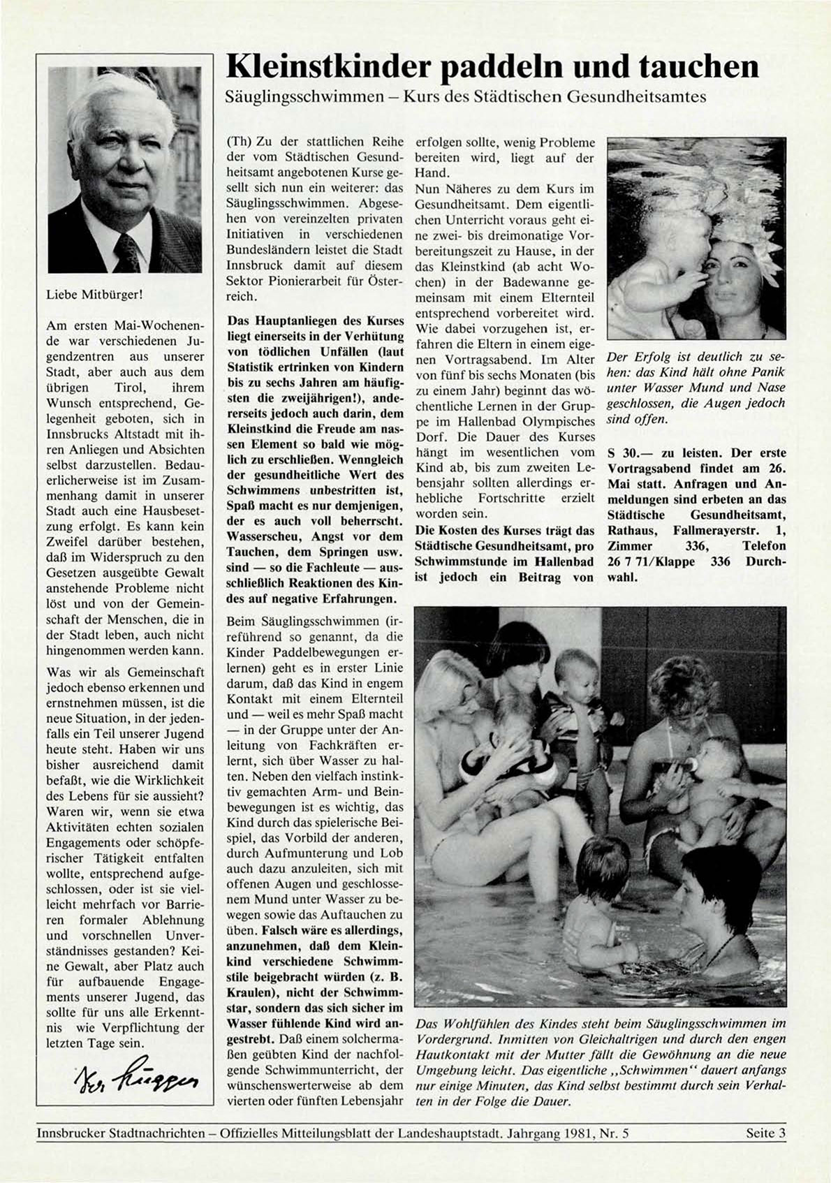Innsbrucker Stadtnachrichten - Offizielles Mitteilungsblatt der Landeshauptstadt. Jahrgang 1981, Nr. 5