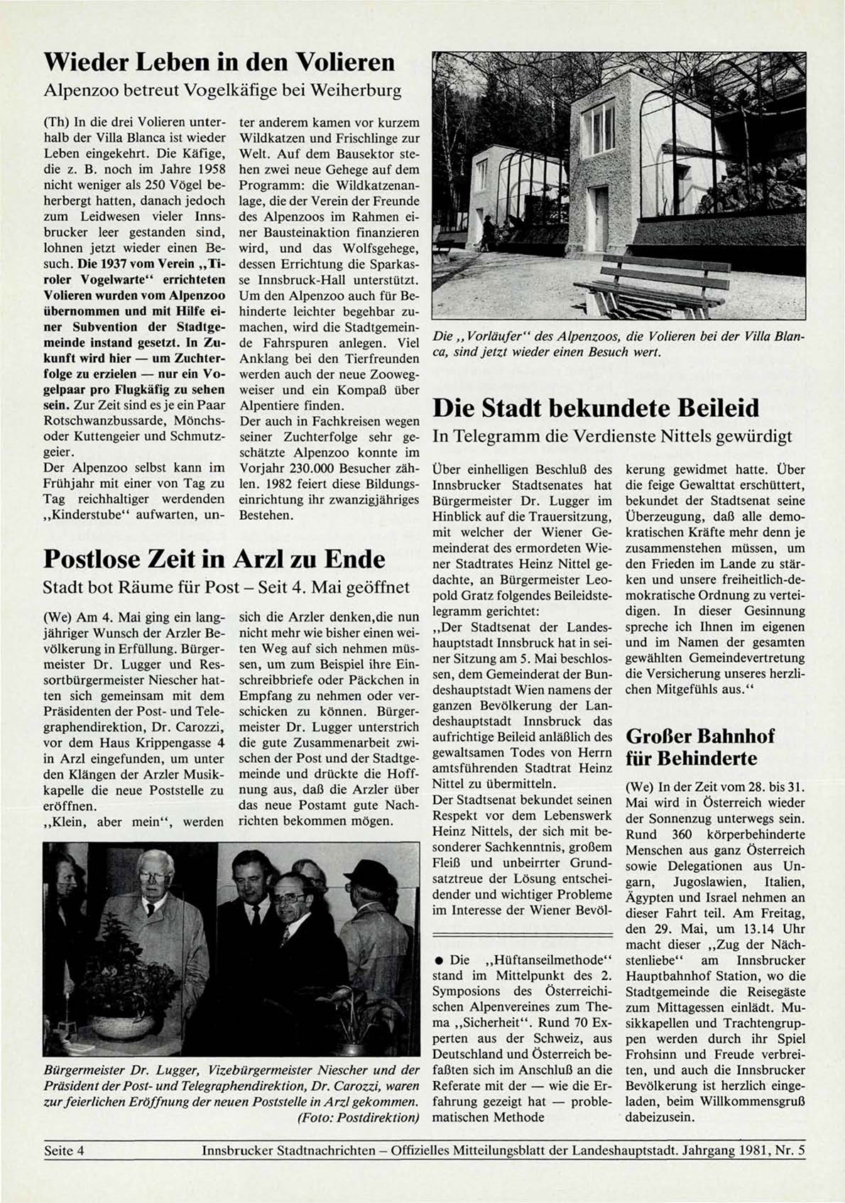 Innsbrucker Stadtnachrichten - Offizielles Mitteilungsblatt der Landeshauptstadt. Jahrgang 1981, Nr. 5