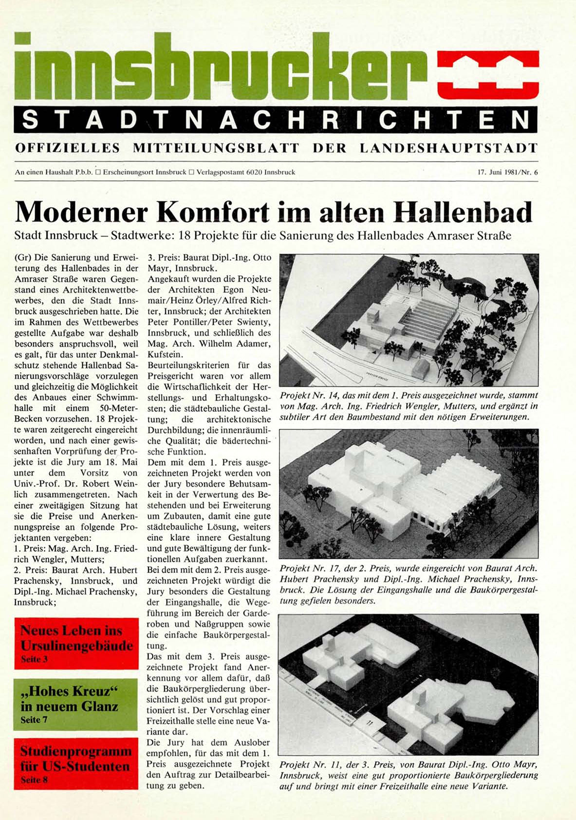 Amraser Straße waren Gegenstand eines Architektenwettbewerbes, den die Stadt Innsbruck ausgeschrieben hatte. Die