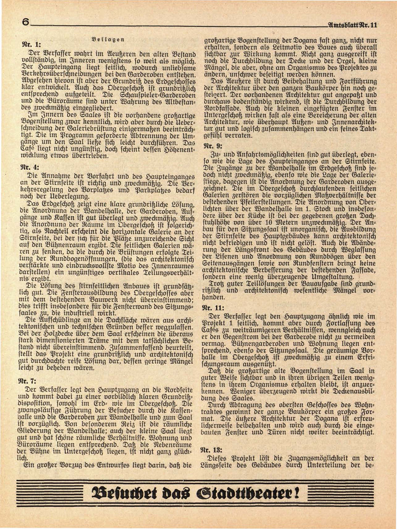 vermag. Bühnengarderoben und Wohnung liegen entsprechend, ebenso der Sitzungssaal. Die geräumige Vorhalle im Obergeschoß ist zweckmäßig zu einem Erfrischungsraum ausgenützt.
