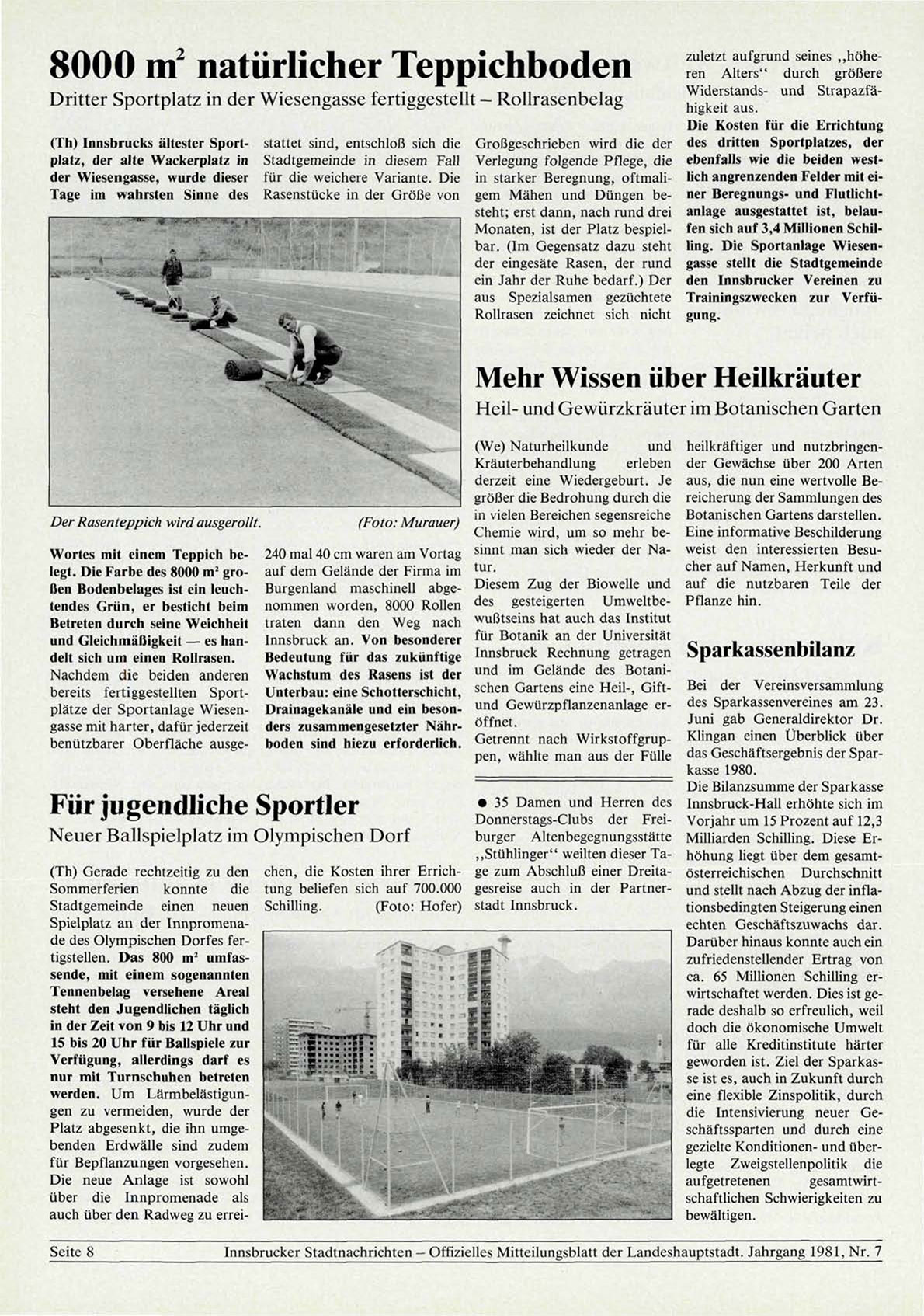 Innsbrucker Stadtnachrichten — Offizielles Mitteilungsblatt der Landeshauptstadt. Jahrgang 1981, Nr. 7