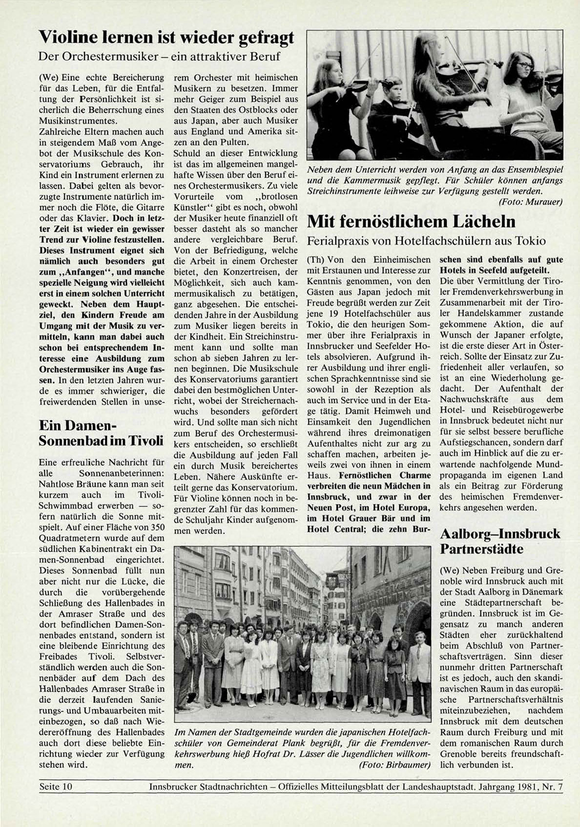 Innsbrucker Stadtnachrichten — Offizielles Mitteilungsblatt der Landeshauptstadt. Jahrgang 1981, Nr. 7
