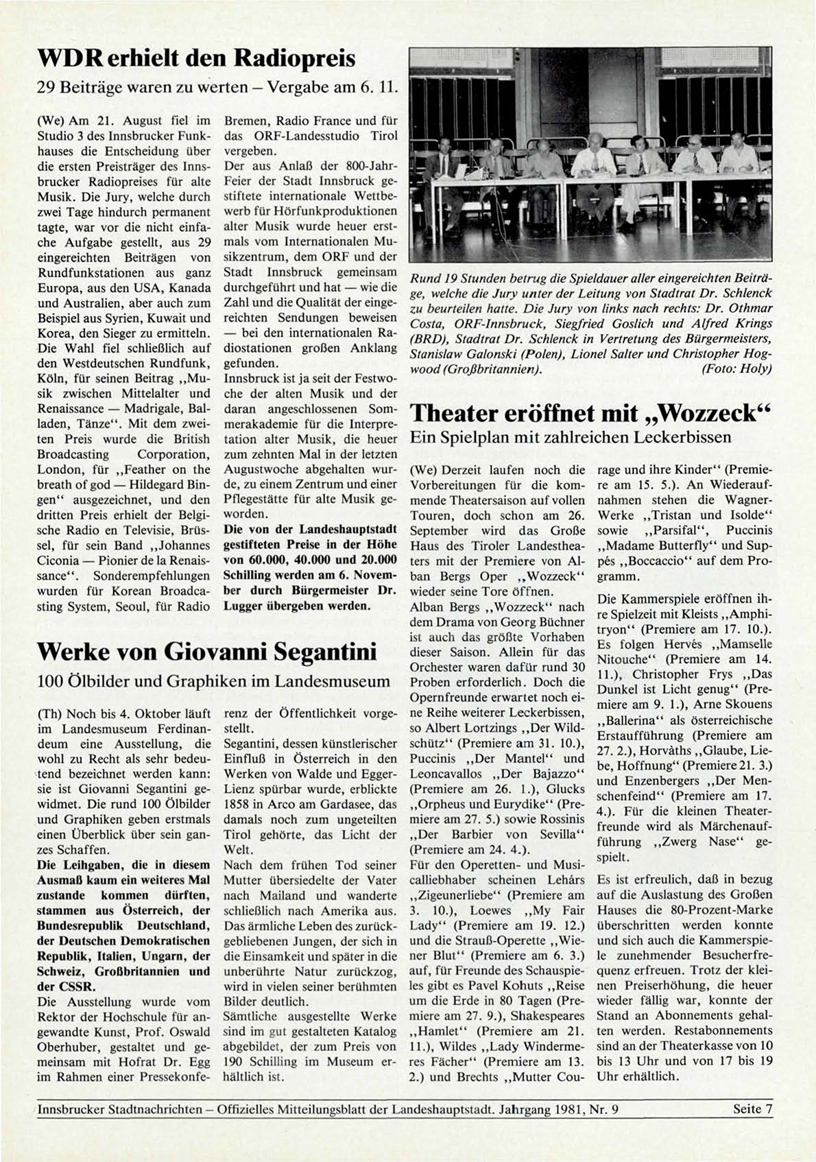 Innsbrucker Stadtnachrichten — Offizielles Mitteilungsblatt der Landeshauptstadt. Jahrgang 1981, Nr. 9