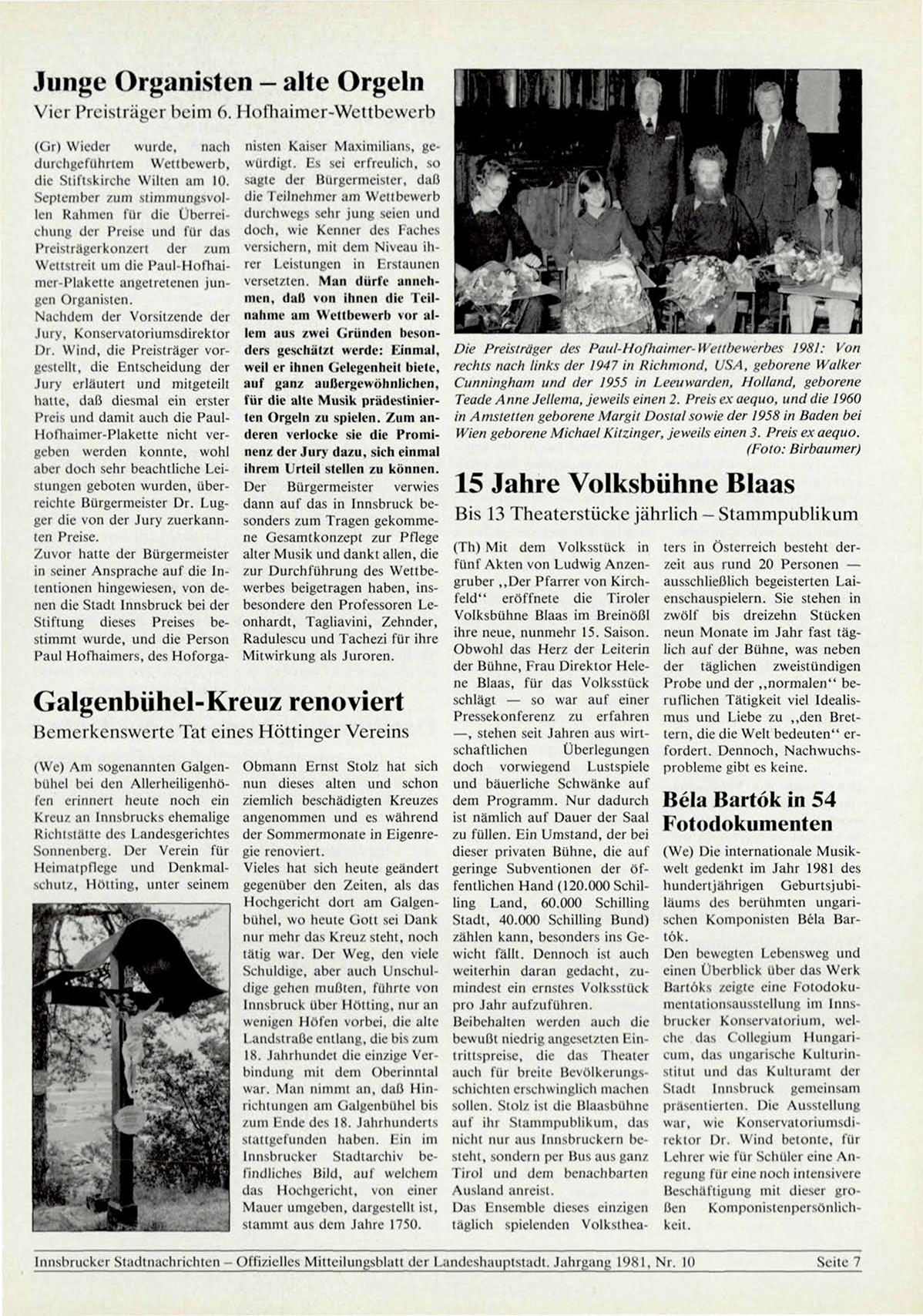 Innsbrucker Stadtnachrichten - Offizielles Mitteilungsblatt der Landeshauptstadt. Jahrgang 1981, Nr. 10