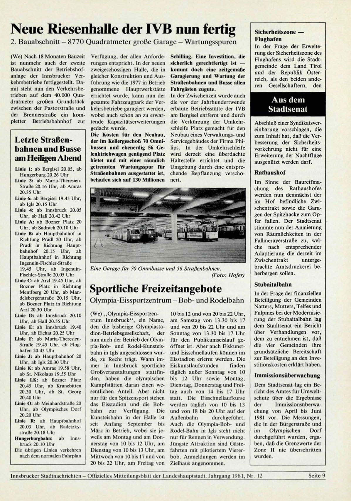 Innsbrucker Stadtnachrichten - Offizielles Mitteilungsblatt der Landeshauptstadt. Jahrgang 1981, Nr. 12