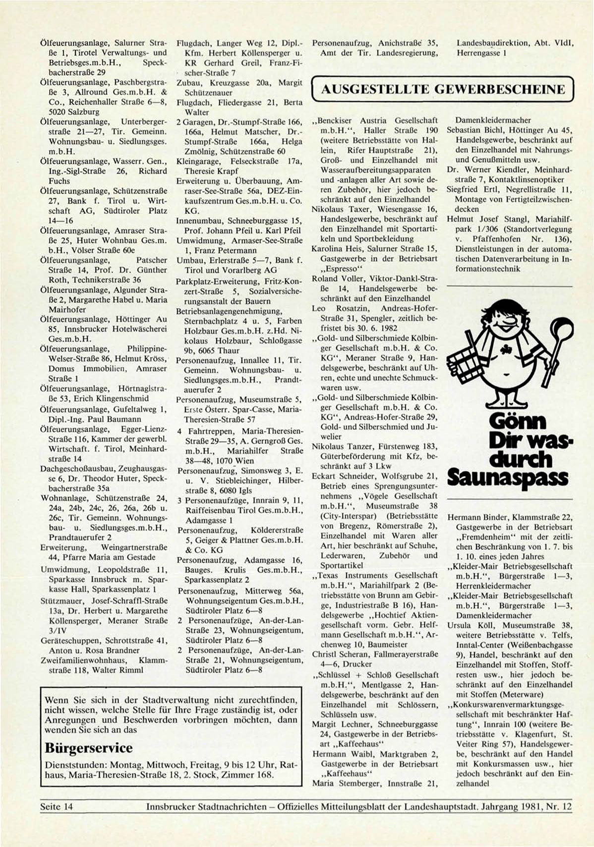 Innsbrucker Stadtnachrichten — Offizielles Mitteilungsblatt der Landeshauptstadt. Jahrgang 1981, Nr. 12