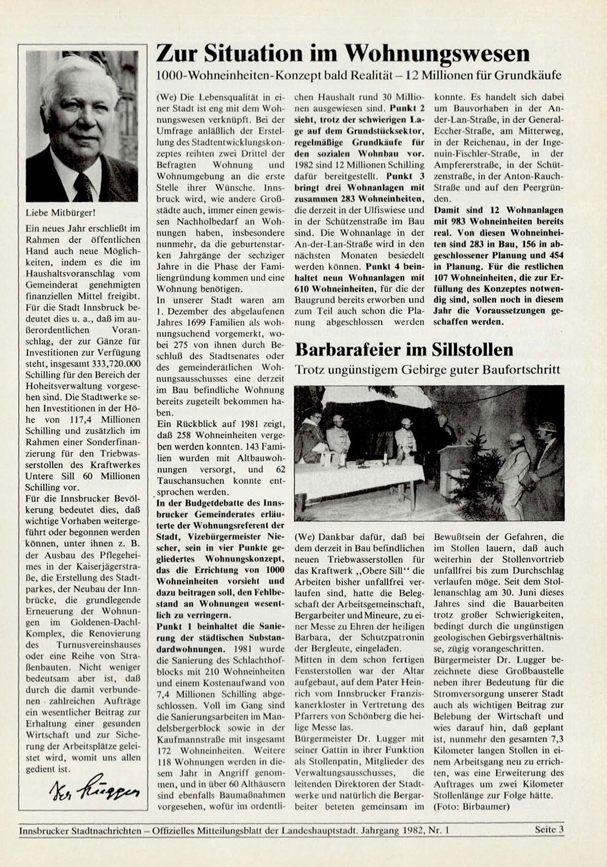 I n n s b r u c k e r S t a d t n a c h r i c h t e n - O f f i z i e l l e s M i t t e i l u n g s b l a t t d e r L a n d e s h a u p t s t a d t . J a h r g a n g 1982, N r . 1