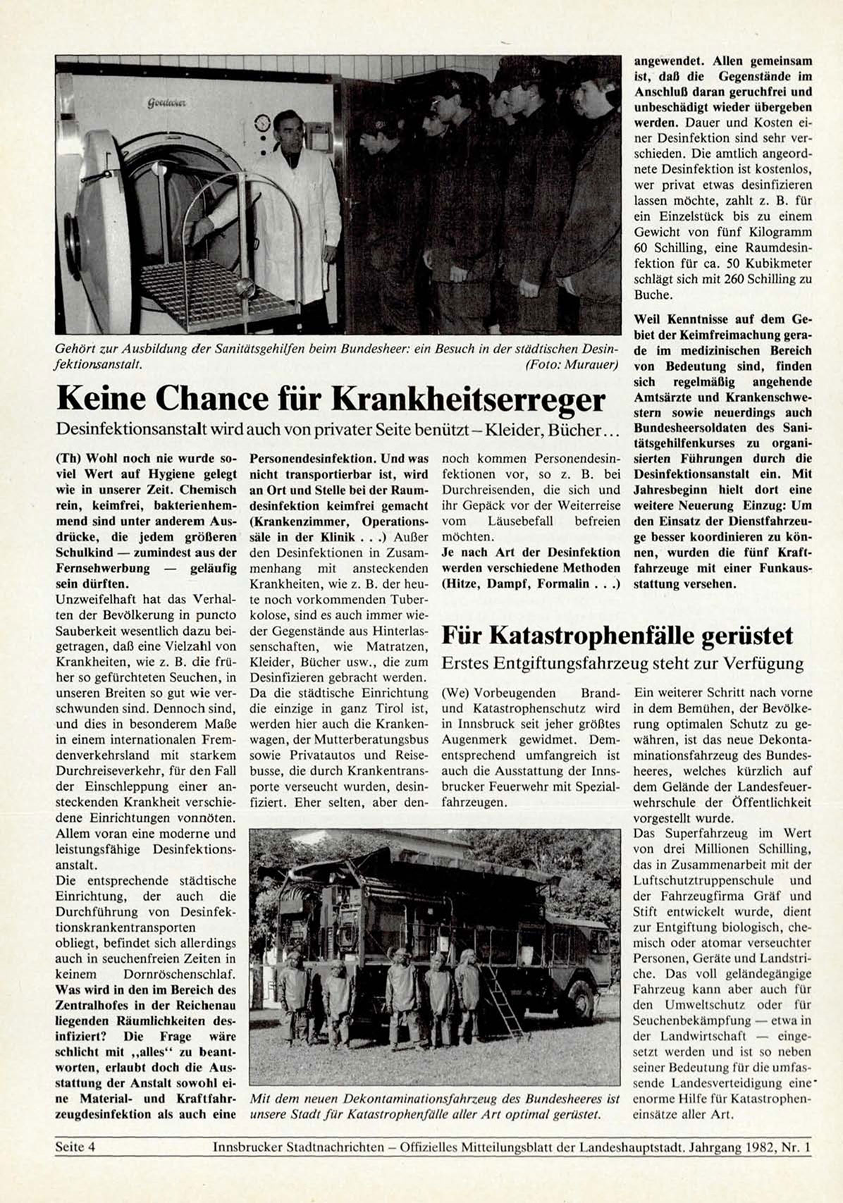 Innsbrucker Stadtnachrichten - Offizielles Mitteilungsblatt der Landeshauptstadt. Jahrgang 1982, Nr. 1