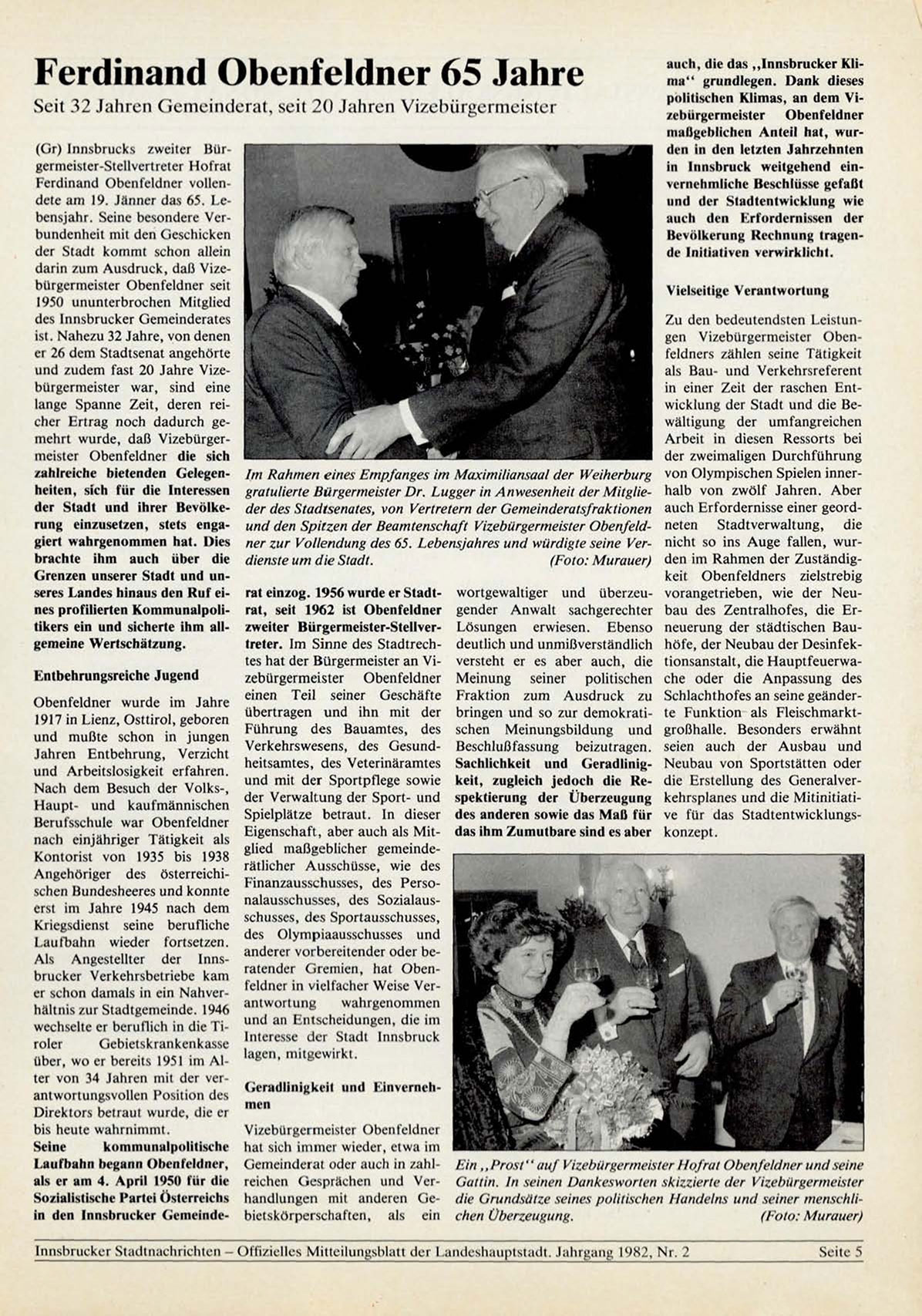 d a r i n / u m A u s d r u c k , d a ß Vi/.eb ü r g e r m e i s t e r O b e n f e l d n e r seit