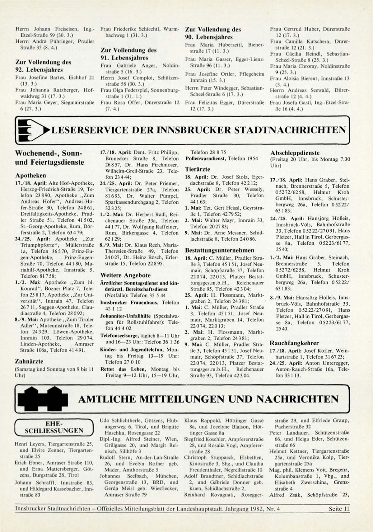 Innshruckcr Stadtnachrichten - Offizielles Mitteilungsblatt der Landeshauptstadt. Jahrgang 1982, N r . 4