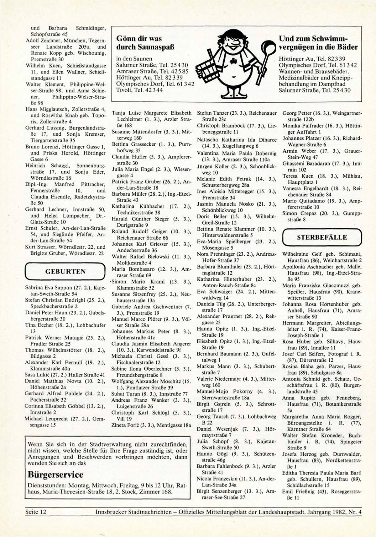 [nnsbnicker Stadtnachrichten - Offizielles Mitteilungsblatt der Landeshauptstadt. Jahrgang 1982, Nr. 4