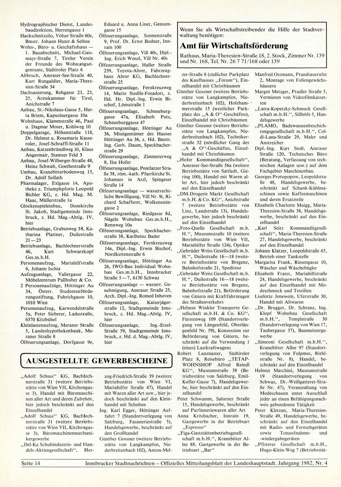 Innsbrucker Stadtnachrichten - Offizielles Mitteilungsblatt der Landeshauptstadt, .lahrgang 1982, Nr. 4