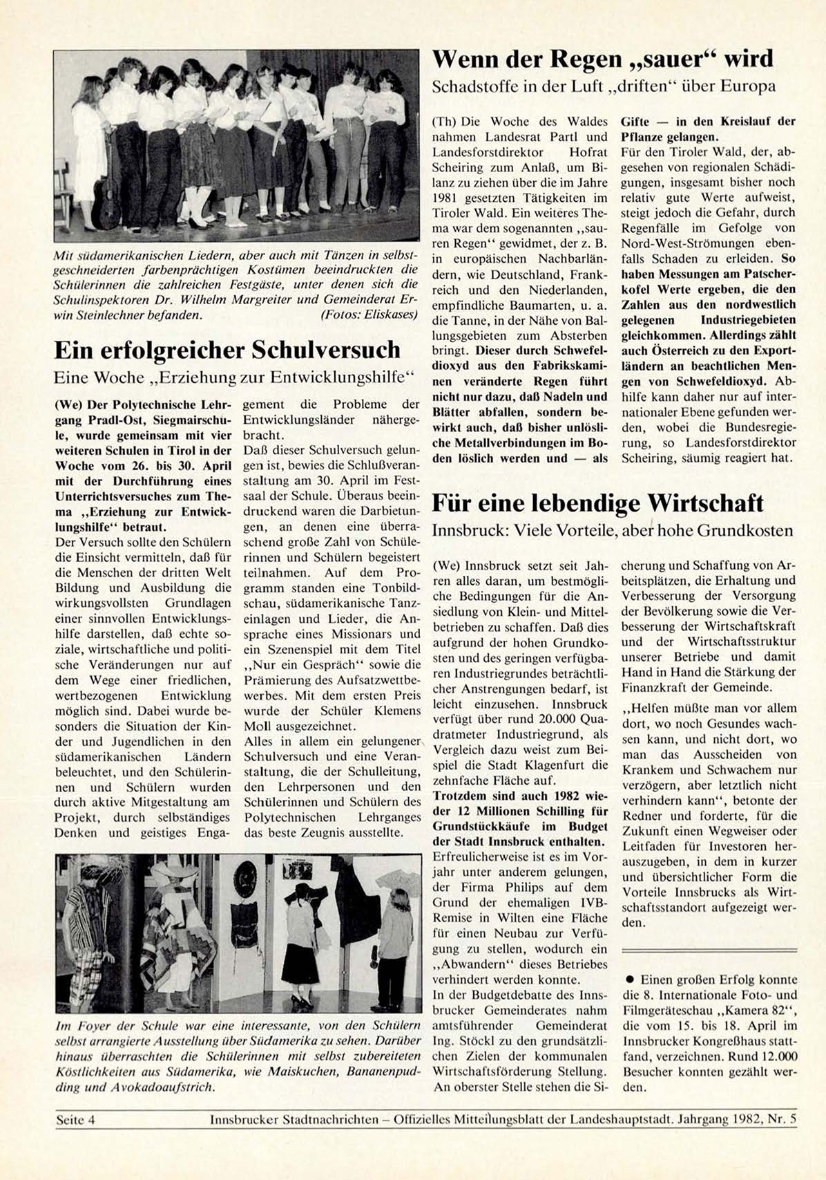 I n n s b r u c k e r S t a d t n a c h r i c h t e n - O f f i z i e l l e s M i t t e i l u n g s b l a t t d e r L a n d e s h a u p t s t a d t . J a h r g a n g 1982, N r . 5