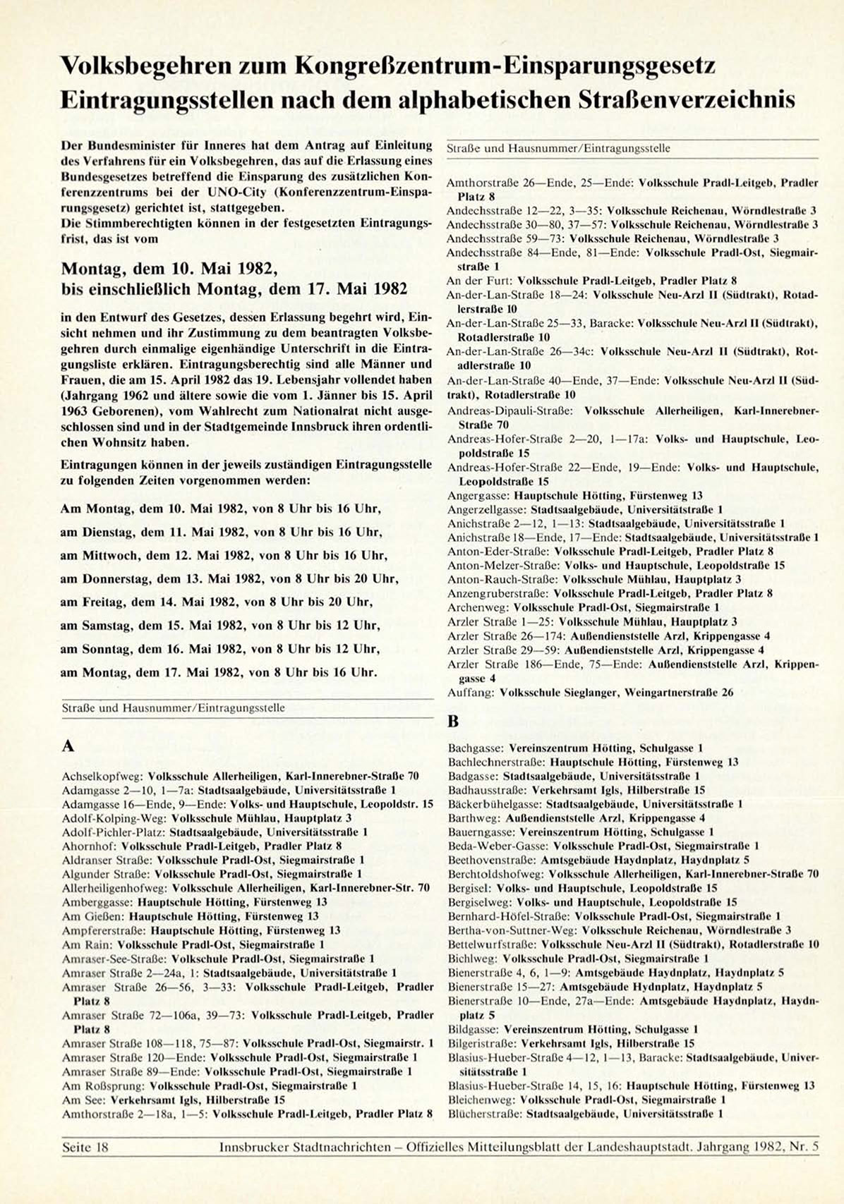 Innsbrucker Stadtnachrichten - Offizielles Mitteilungsblatt der Landeshauptstadt. Jahrgang 1982, N r . 5
