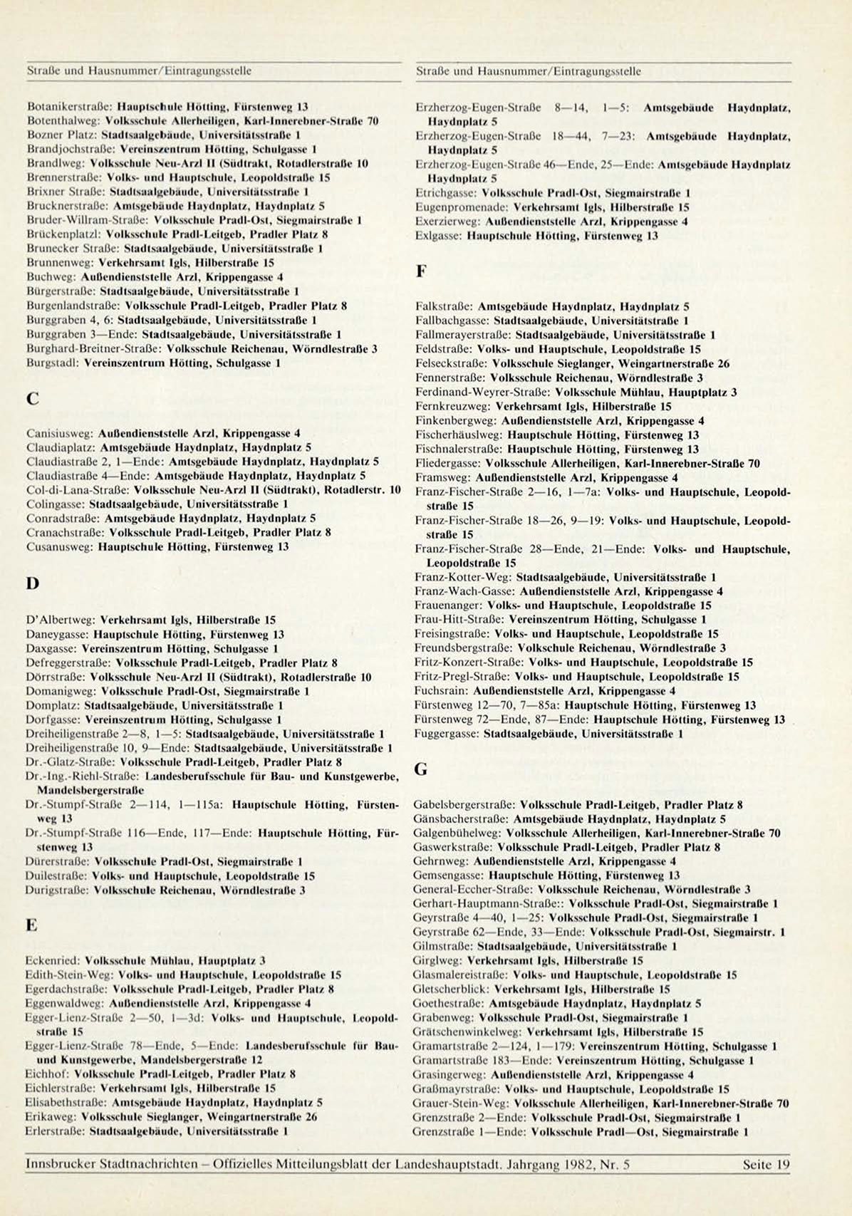Itinsbtuekcr Stadtnachrichtcn - Offizielles Mitteilungsblatt der Landeshauptstadt. Jahrgang 1982, N r . 5