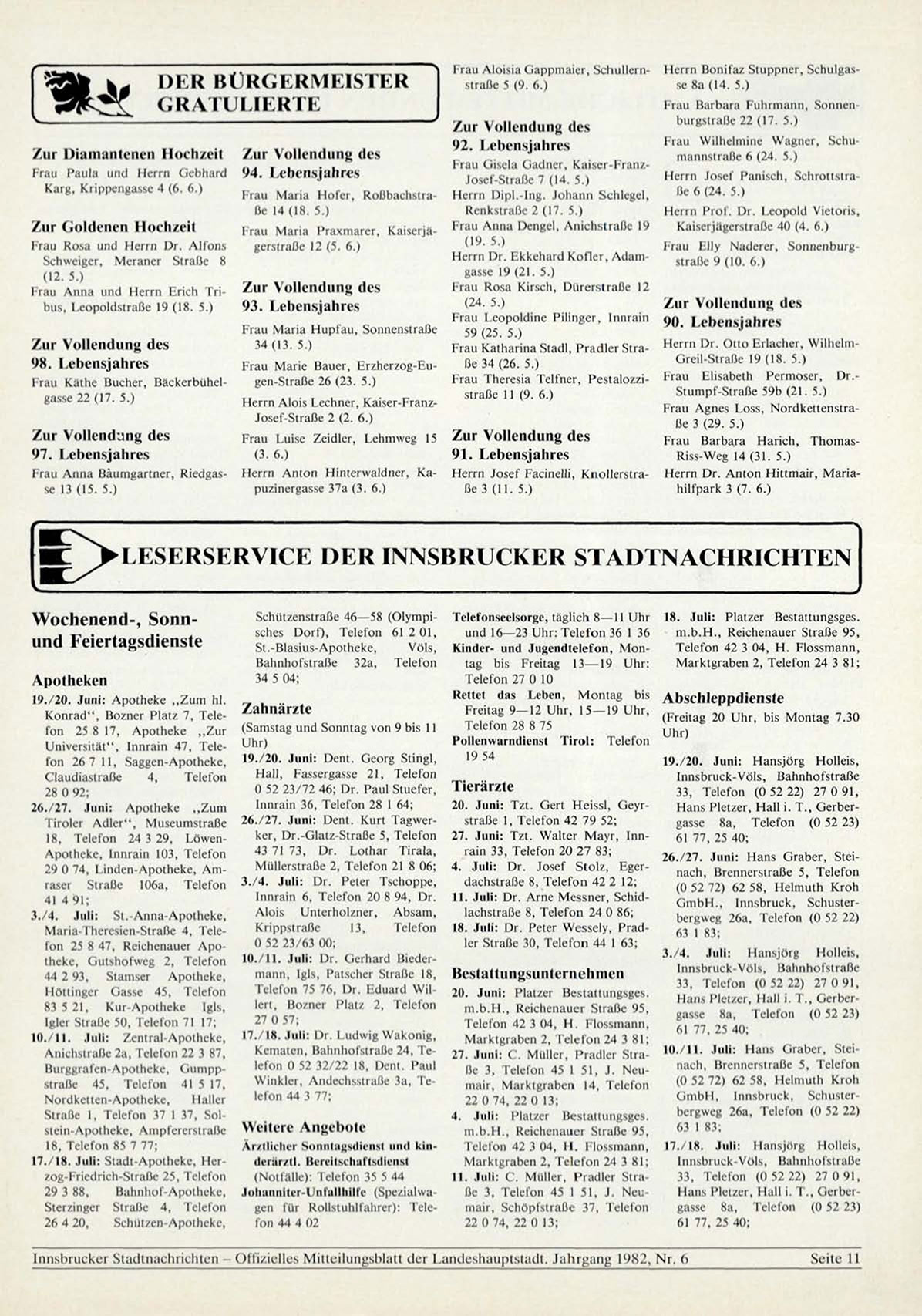 Mitteilungsblatt der Landeshauptstadt. Jahrgang 1982, Nr. 6