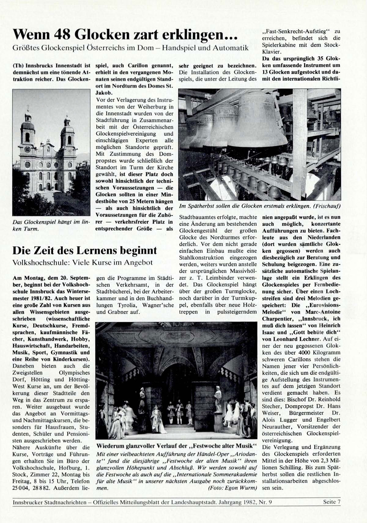Innsbrucker Stadtnachrichten - Offizielles Mitteilungsblatt der Landeshauptstadt. Jahrgang 1982, Nr. 9
