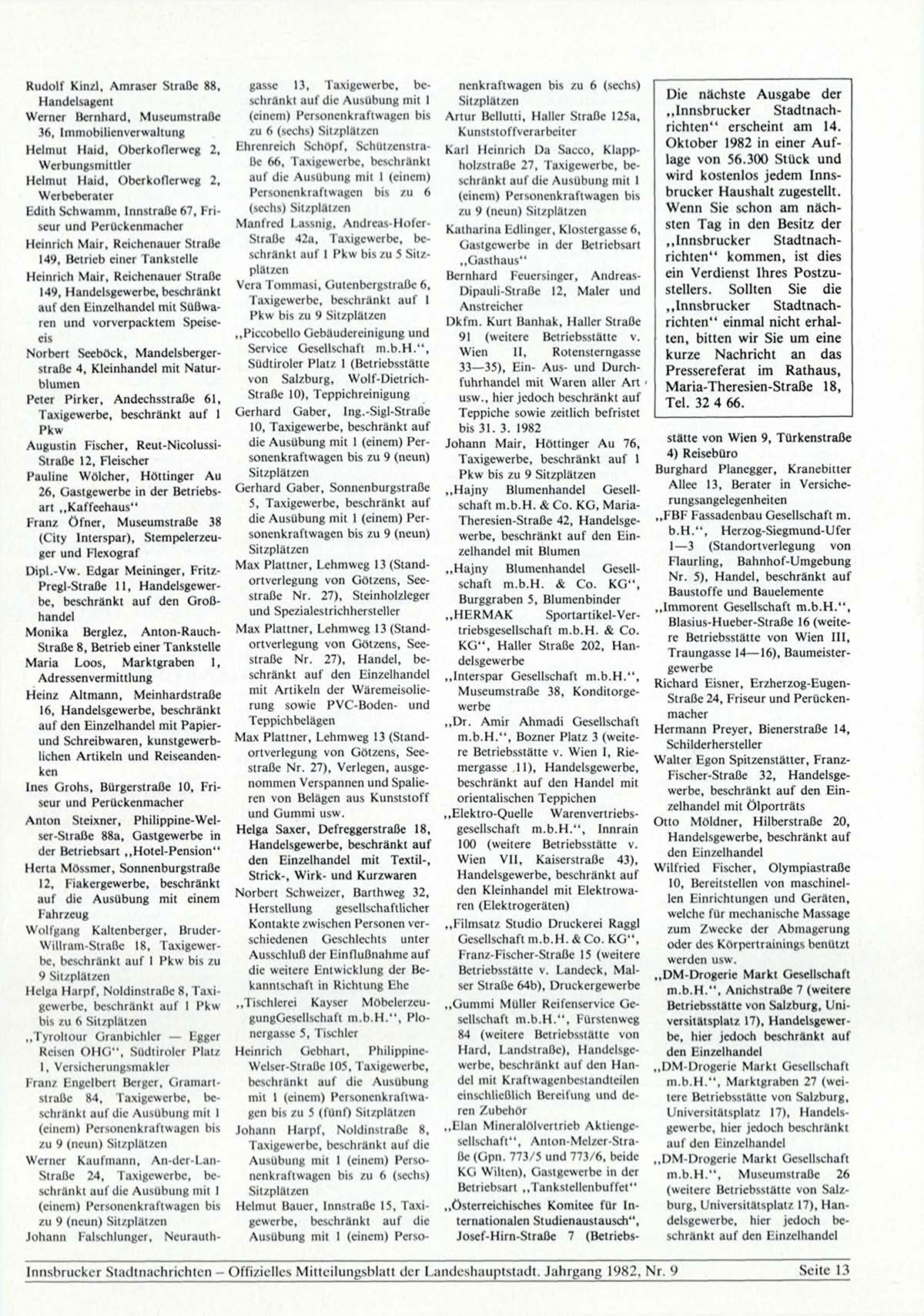 I n n s b r u c k c r S t a d t n a c h r i c h t e n - O f f i z i e l l e s M i t t e i l u n g s b l a t t d e r L a n d e s h a u p t s t a d t . J a h r g a n g 1982, N r . 9