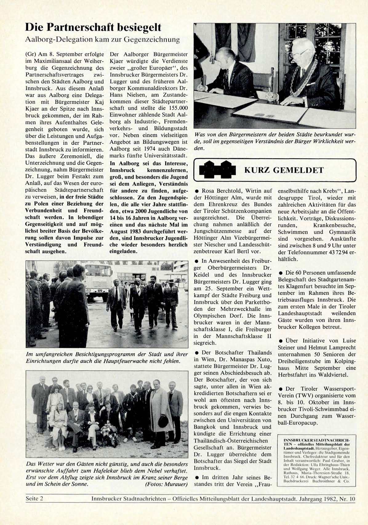 über die Leistungen und A u f g a benstellungen in der Partnerstadt Innsbruck zu informieren.