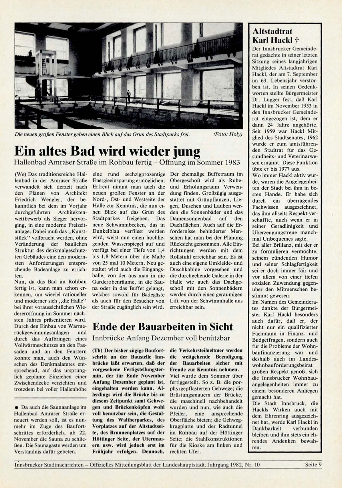 I n n s b r u c k e r S t a d t n a c h r i c h t e n - O f f i z i e l l e s M i t t e i l u n g s b l a t t d e r L a n d e s h a u p t s t a d t . J a h r g a n g 1982, N r. Ki