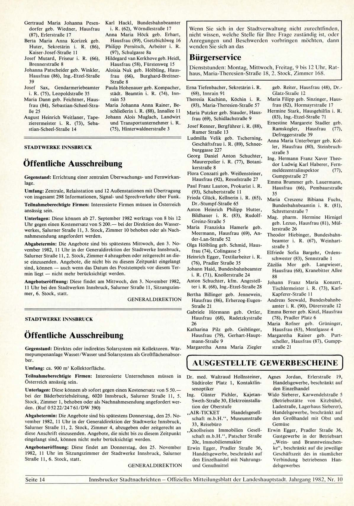 Abgabetermin: Die Angebote sind bis spätestens Donnerstag, den 25. N o vember 1982, 11 U h r i n der Generaldirektion der Stadtwerke Innsbruck,