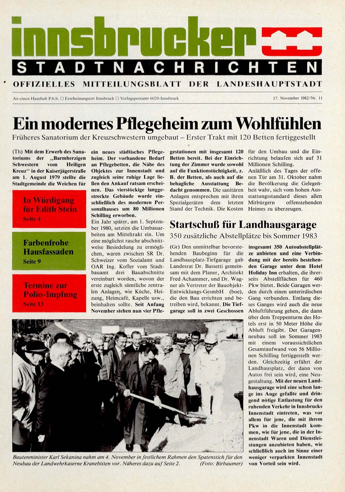 Bautenminister Karl Sekanina nahm am 4. November